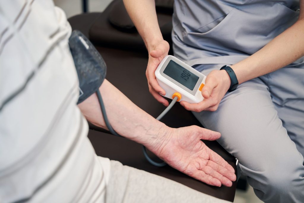 Ciśnienie mierzymy na ręce podpartej, ułożonej na wysokości serca. Ręka zwisająca albo oparta zbyt nisko potrafi „dobić” wynik w górę i utrudnia porównania.