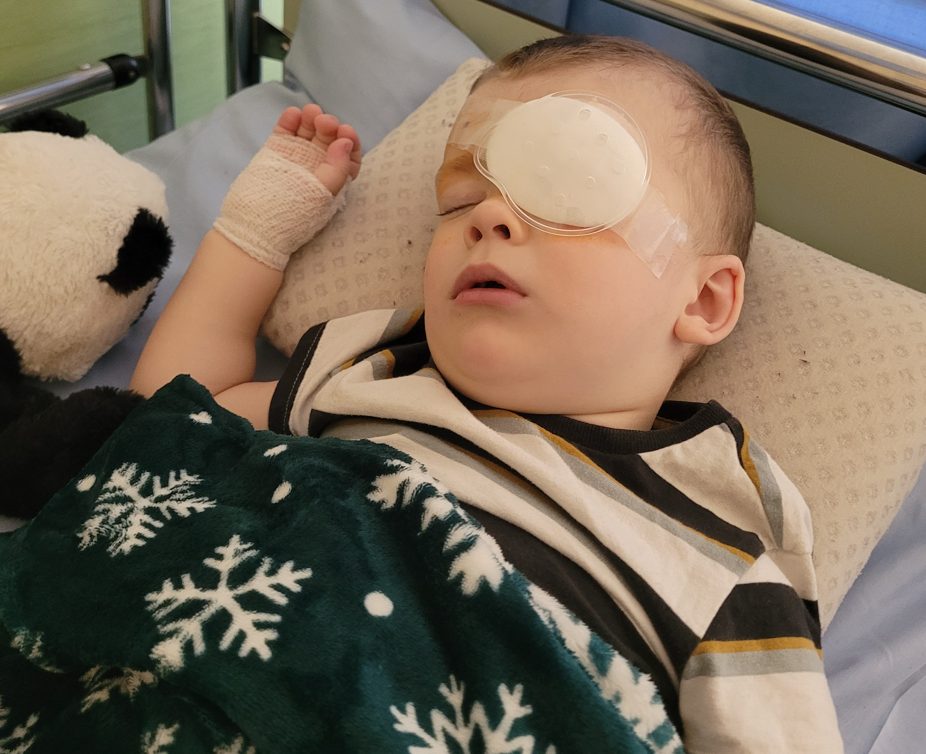 Adasiowi wraz z aniridią dokucza nadwzroczność, astygmatyzm i przede wszystkim silny oczopląs, który zmusza naszego synka do znajdowania sobie tak zwanej „strefy ciszy”, czyli położenia oczu, w którym oczopląs jest najmniejszy. Synek przeszedł już jeden zabieg, który miał pomóc Adasiowi patrzeć na wprost i zredukować przy tym oczopląs. Niestety Adaś nadal patrzy skręcając głowę, co w dłuższym okresie może spowodować u niego problemy z kręgosłupem i postawą. Synek powinien przejść kolejne operacje tego typu, lecz obecnie pojawiły się inne, ważniejsze problemy.