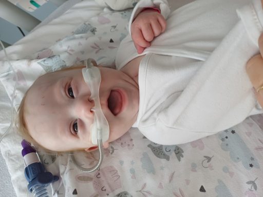 Mam na imię Amelka, urodziłam się w 38 tygodniu ciąży z Trisomią 21, ze skrajnie niską masą urodzeniową ( 2390g) i dodatkowymi obciążeniami: ubytkiem międzykomorowym z niedomykalnością zastawek : mitralną i trójdzielną trzeciego stopnia. W moim rocznym życiu dużo się podziało. Od samego początku nie mogłam być z mamą, od razu miałam wycieczkę do innego szpitala, gdzie stwierdzili, że moje serduszko nie ma siły pracować poza brzuszkiem mamy, wtedy wykonano mi operację Banding tętnicy płucnej. Niestety nie obyło się bez powikłań, bardzo długo zbierały mi się płyny w worku osierdziowym, jak i w opłucnych, miałam również atak padaczki przez skrzepliny w główce. To przyczyniało się do wydłużonego pobytu w szpitalu. Po prawie dwóch miesiącach udało mi się pierwszy raz od narodzin zobaczyć mój dom i poznać rodzeństwo. W maju znów wylądowałam w szpitalu, żeby kardiochirurdzy mogli naprawić moje serduszko. Udało się stworzyć trzecią zastawkę i zaszyć częściowo ubytek. Po tej operacji również miałam powikłania, płyny w opłucnych i porażenie kopuły przepony, co doprowadziło do kolejnej już trzeciej operacji w moim życiu, długo potrzebowałam wsparcia tlenu. Dopiero po odpowiednio dobranych lekach wszystko się ustabilizowało i po miesiącu mogłam znów wrócić do mojego domku. Nadal jesteśmy pod opieką kardiologiczną, która pilnuje naszego serduszka czy dobrze pracuje. Mamusia z tatusiem bardzo się martwią, bo lekarz mówił ze może być potrzebna kolejna operacja. Jak dotąd uczęszczam na rehabilitację ruchową, mam również zajęcia logopedyczne i sensoryczne, aby móc tak bardzo nie odbiegać od moich rówieśników, którym wszystko przychodzi łatwiej. Potrzebuję wizyt u różnych specjalistów. Wizyty te są bardzo kosztowne, a terminy odległe. Mam nadzieję, że skoro dotarłeś, dotarłaś na koniec mojej opowieści to zechcesz mi towarzyszyć w drodze do sprawności i wesprzesz mnie w walce o lepsze funkcjonowanie. Zebrane pieniążki rodzice przeznaczą na wizyty u specjalistów, dodatkowe zajęcia rozwijające czy turnusy rehabilitacyjne. Za okazaną pomoc bardzo dziękuję. Amelka.