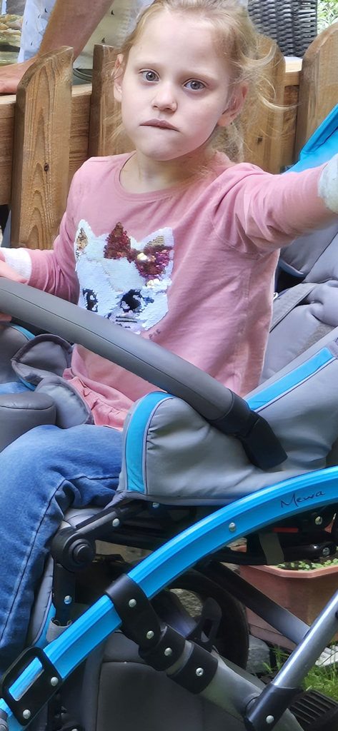Ania wymaga codziennej rehabilitacji i stałej opieki specjalistów. Nosi ortezy i taśmy derotujące, które pomagają zapobiec operacji biodra i wspierają naukę chodzenia. Niedawno przeszła także poważny wypadek domowy – oparzyła ręce wrzątkiem. Obecnie nosi specjalne rękawiczki od palców do łokcia, które chronią skórę, poprawiają krążenie i wspomagają gojenie. W celu przeszczepu skóry pobrano wycinek z nogi na lewą rękę.