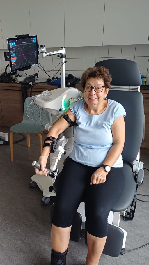 Pod okiem wspaniałej rehabilitantki i przy pomocy nowoczesnego sprzętu zaczęłam stawiać pierwsze kroki – przy dużym, ciężkim chodziku. To wciąż bardzo trudne, ale daje mi nadzieję.