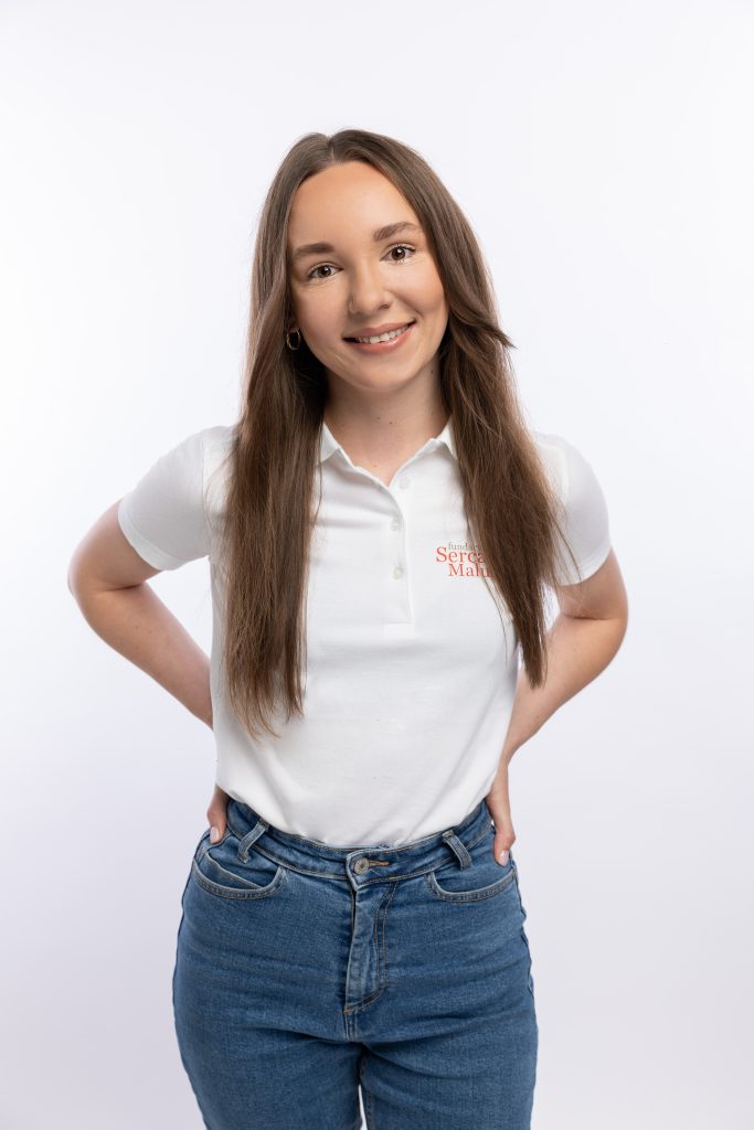 Energiczna Wiceprezes, nasza zadaniowa Sylwia, która w pełnym skupieniu oddaje się swojej pracy. To właśnie dzięki niej wsparcie finansowe trafia do naszych Podopiecznych w tak ekspresowym tempie! W biurze każdy może liczyć na jej wsparcie, zwłaszcza wtedy, kiedy jedna para rąk to za mało. Swoją ścieżkę edukacyjną zakończyła z tytułem pedagoga, a zdobytą na studiach wiedzę, wykorzystuje nie tylko w życiu prywatnym, ale i zawodowym.