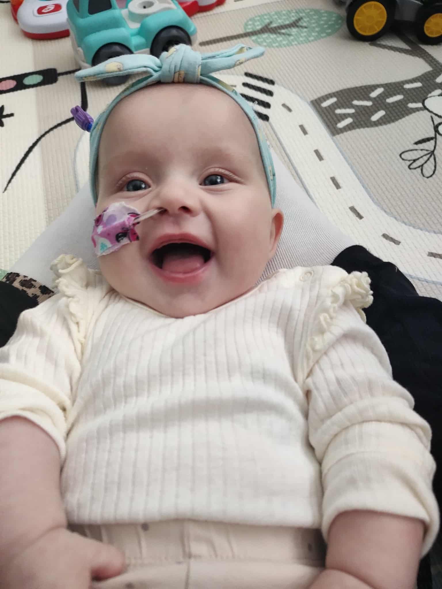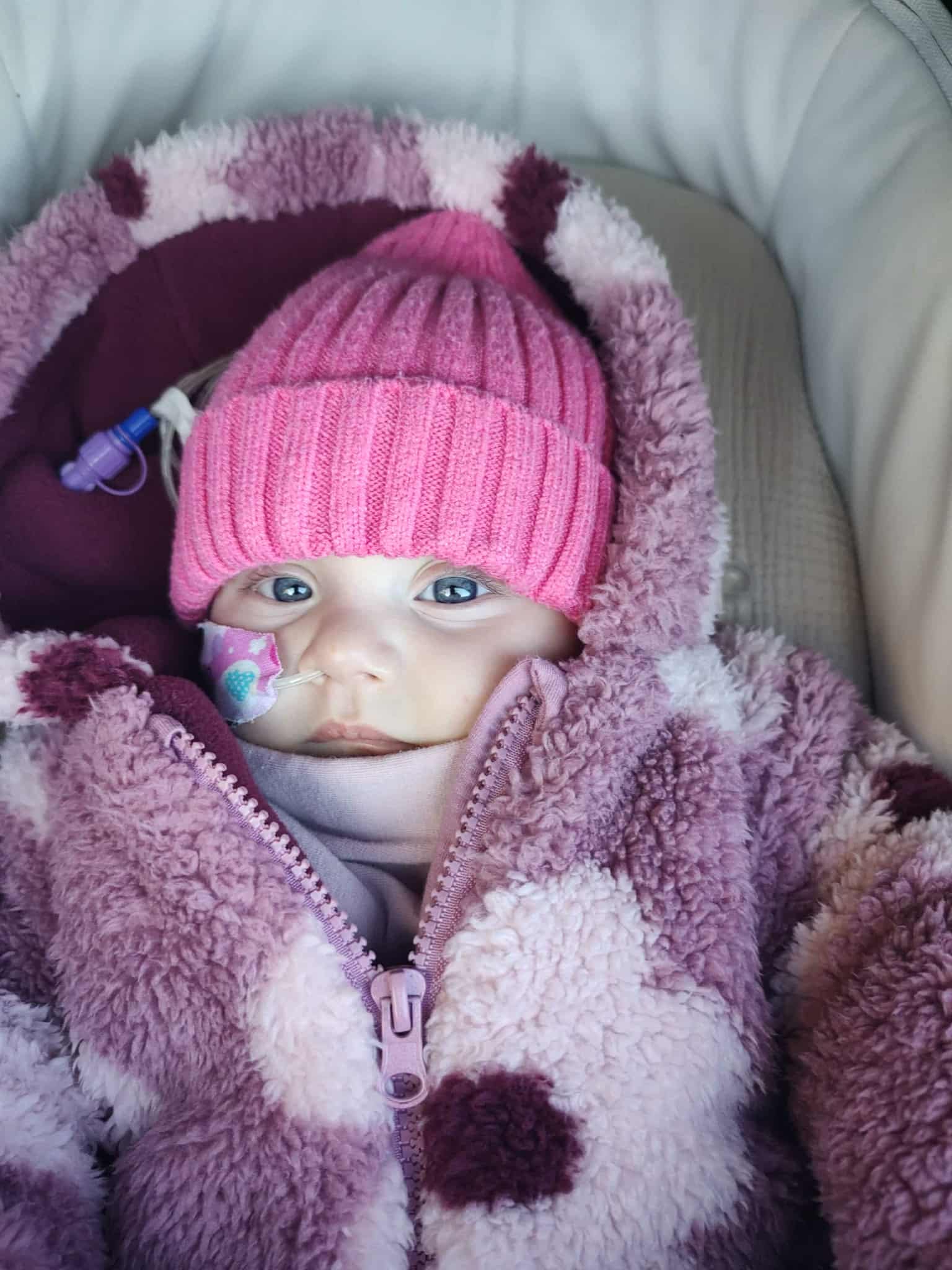 Niestety po urodzeniu nie mogłam przywitać się z rodzicami, musiałam dostać wsparcie intensywnej terapii. Przez miesiąc jedynym domem, jaki znałam, był szpital, dopiero po tym czasie mogłam poznać mojego braciszka, który dzielnie na mnie czekał i tęsknił za mamą. Niestety, w domku byłam tylko 3 tygodnie, z atakiem anoksemicznym karetka zabrała mnie z powrotem w znajome mi miejsce. 3 tygodnie później przeszłam moją pierwszą wielogodzinną operację serduszka w krążeniu pozaustrojowym. Operację ratującą życie, ale nie poprawiającą komfortu mojego życia. Po niej osłabłam, przestałam jeść, od tego czasu jestem karmiona sondą i specjalnym wysokokalorycznym mlekiem. Wróciłam do domu, ale co chwila znowu musiałam zostawiać brata i tatę-wracać do szpitala. Z 6 miesięcy mojego życia- 3 spędziłam w szpitalu. Zmieniając sale, oddziały i piętra, w listopadzie przeszłam kolejną operację serduszka, niestety nie ostatnią.