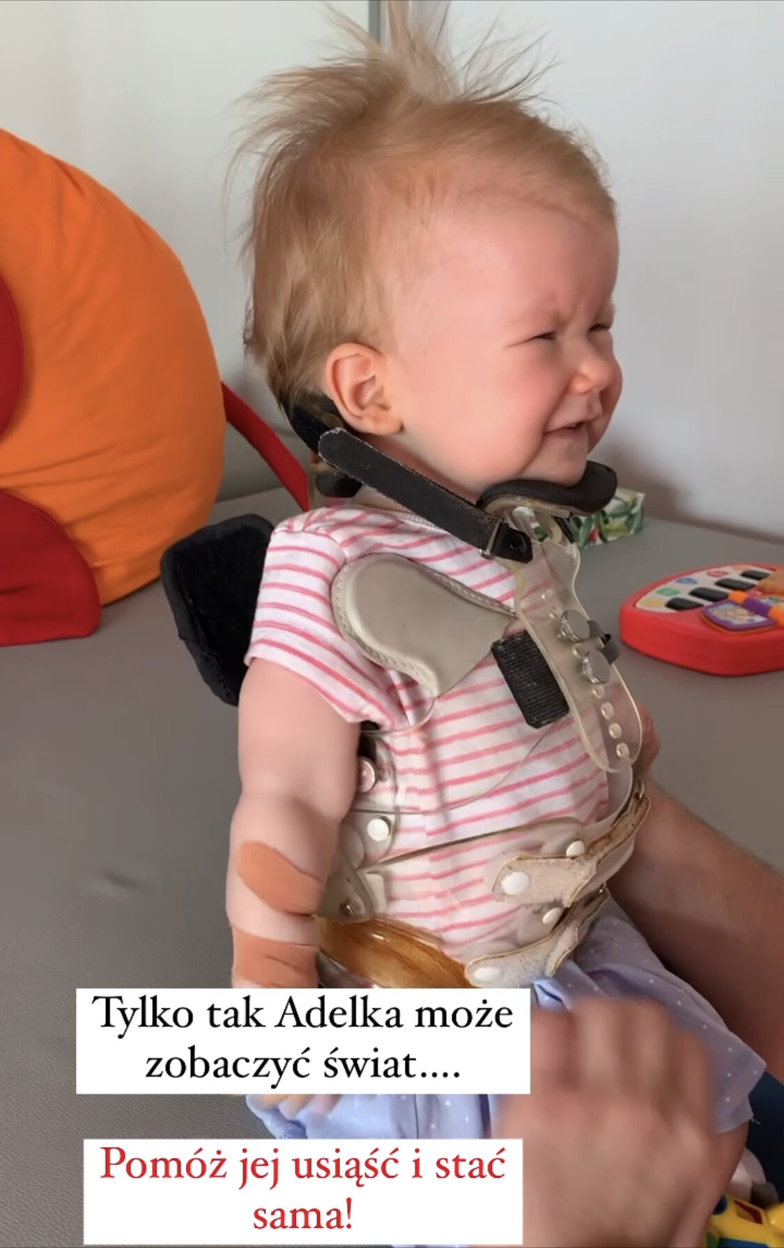 Nasza córeczka Adelina przyszła na świat w lipcu 2020 roku. Pojawiła się w naszym życiu jako pozornie zdrowa dziewczynka, która otrzymała 10 punktów w skali Apgar. Po pięciu tygodniach zaczęliśmy obserwować niepokojące symptomy. Zastanawiał nas cichy płacz naszej córeczki, słabsze ruchy rąk i zanik lub tylko minimalny ruch nóżek. Szereg badań pozwolił postawić diagnozę, która spadła na nas jak grom…