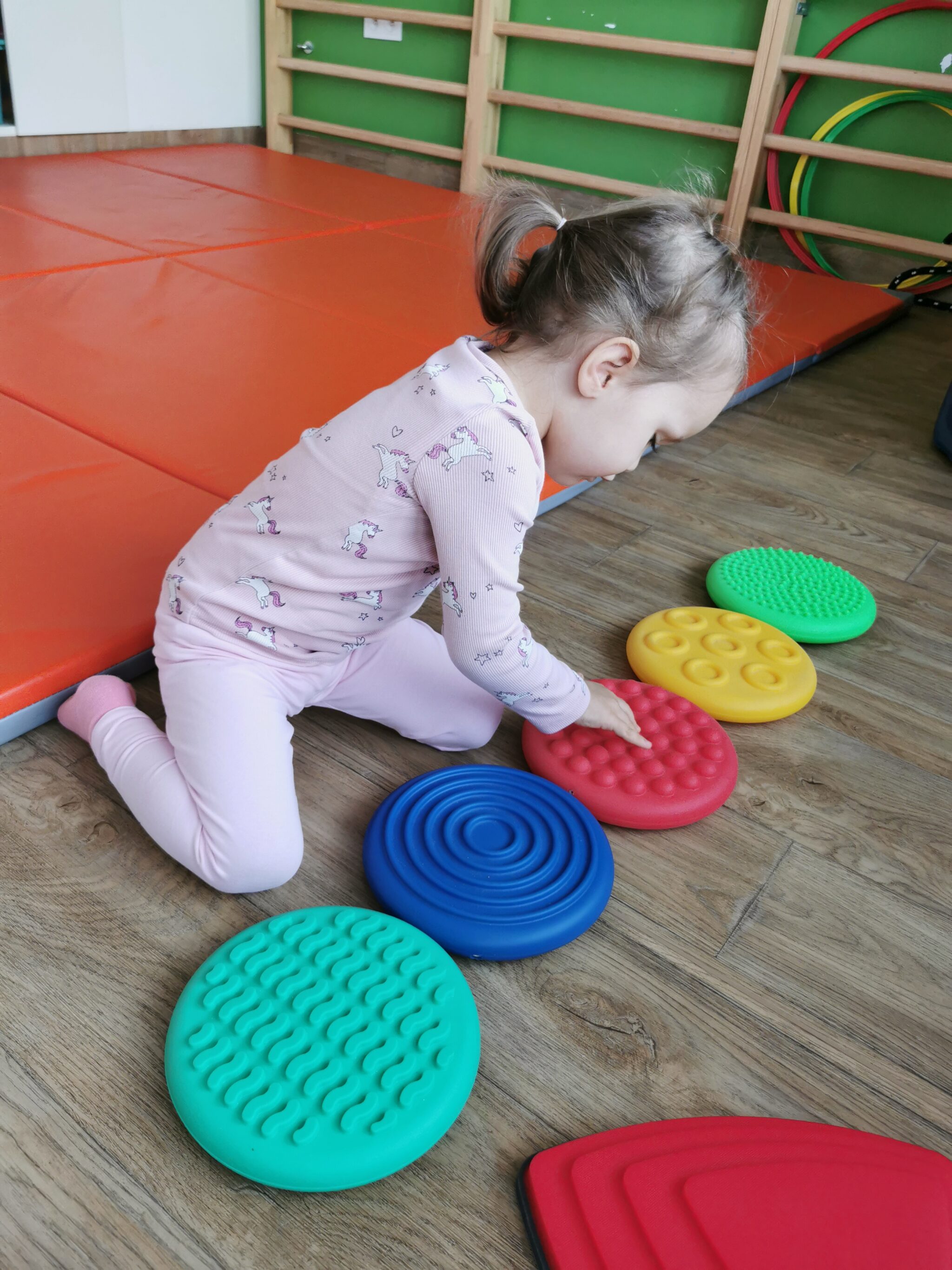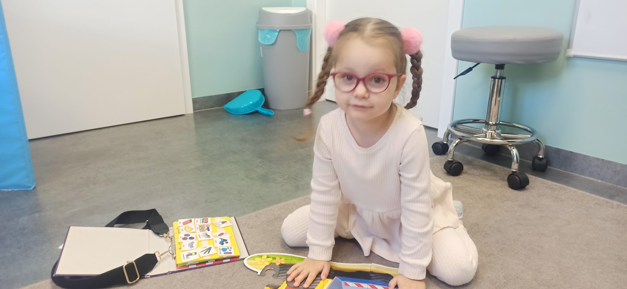Nasza córka ma zdiagnozowany autyzm. Nie wskazuje paluszkiem, nie patrzy na nas, nie reaguje na imię. Ola nie mówi, nie komunikuje swoich potrzeb. Ma wadę stóp, wynikającą z wiotkości stawowej, przez co nosi wkładki do butów. Nosi okulary, ponieważ zez oraz wada wzroku się pogłębiają, jeśli nie uda nam się wzmocnić oczu, w przyszłości będzie konieczna operacja. Aleksandra ma zaburzenia sensoryczne, problemy z czuciem głębokim oraz układem przedsionkowym.