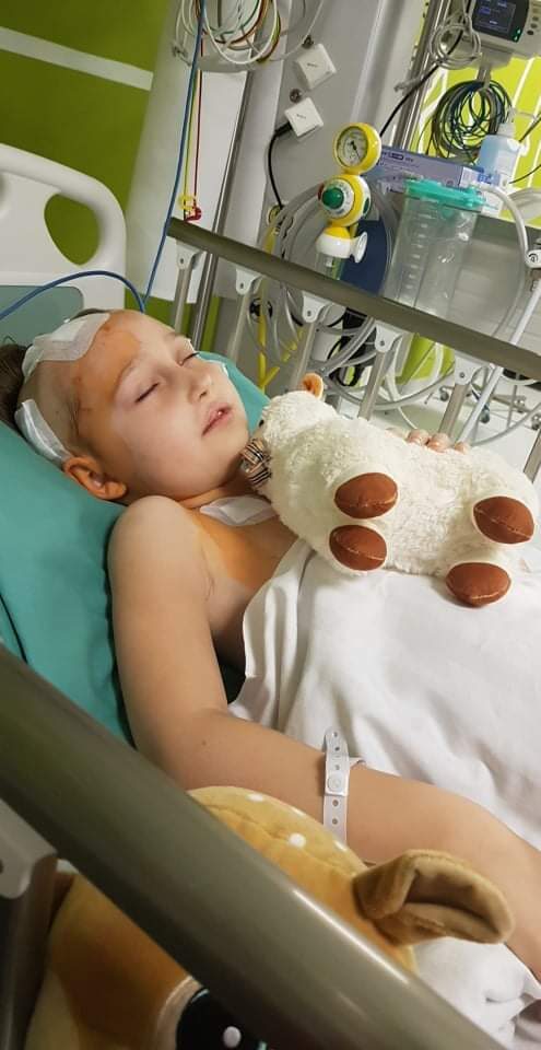 Rozpoczęta wówczas diagnostyka zakończyła się rozpoznaniem rozległej malformacji tętniczo-żylnej na pniu mózgu, która – ze względu na tendencję do pękania i krwawienia – realnie zagrażała życiu naszej córki. Przepełnieni strachem usłyszeliśmy również, że zmiana w głowie Alicji jest nieoperacyjna i jedyną szansą na jej leczenie jest częściowe zamykanie naczyń krwionośnych poprzez serię zabiegów wewnątrznaczyniowych. Rozpoczęte leczenie poskutkowało na 4. etapie pęknięciem naczynia i udarem krwotocznym… Na szczęście nasza córka się nie poddała i wygrała swoją pierwszą walkę o życie. Niestety, wylew pozostawił po sobie duże uszkodzenia mózgu, skutkując trwałym niedowładem prawostronnym, zaburzeniem mowy (afazją), wodogłowiem i padaczką. Alicję czeka długotrwała i intensywna rehabilitacja oraz stałe leczenie, aby miała szansę powrócić do zdrowia. Wiemy, że nasza córka się nie podda, a jedyne, co nas martwi, to finanse, które mogą stać się decydującym czynnikiem o jej przyszłości… Stąd nasza serdeczna prośba o Państwa pomoc, dzięki której będziemy mogli zapewnić Alicji kompleksową opiekę specjalistów, uczestnictwo w turnusach rehabilitacyjnych oraz zaopatrzyć ją w specjalistyczny sprzęt ułatwiający codzienne funkcjonowanie.