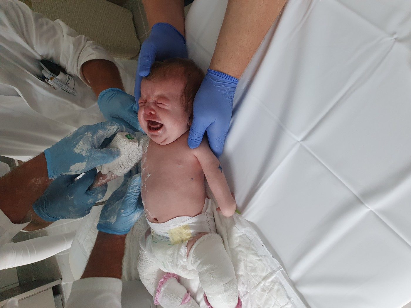 Cała ciąża z Amelką nie wskazywała na jakiekolwiek nieprawidłowości, wszystko przebiegło książkowo, dlatego też ogromne było nasze zdziwienie, gdy po narodzinach córki 29 kwietnia 2020 r., dowiedzieliśmy się o artrogrypozie, a dokładniej amioplazji (wrodzonej sztywności stawów). Amelka ma sztywne rączki w łokciach, przykurcze w nadgarstkach i stópki końsko-szpotawe.