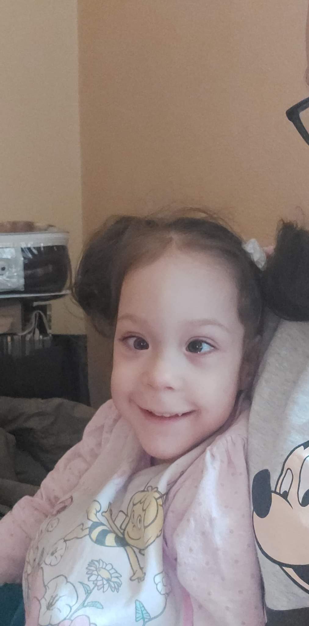 Obecnie Amelia jest żywiona pozajelitowo za pomocą PEG-a ze względu na swoje problemy z doustnym jedzeniem. Pozostaje także pod opieką logopedy, rehabilitanta i okulisty. Choroba sprawiła, że nasza córeczka do tej pory nie siedzi, nie mówi i nie chodzi, a my staramy się zrobić wszystko, żeby z pomocą specjalistów osiągnąć choć jeden kamień milowy w jej rozwoju. I właśnie tutaj pragniemy skierować do Państwa naszą prośbę o pomoc w walce o sprawność Amelki.
