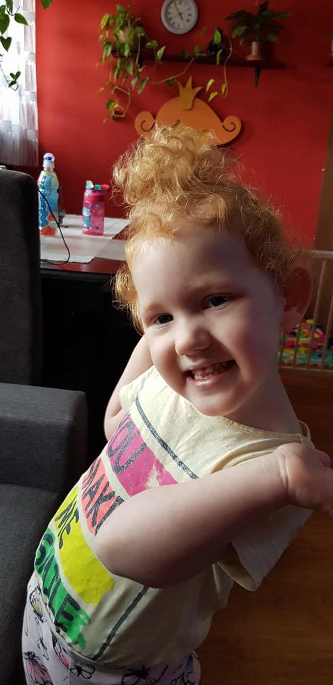 Dopiero w wieku 3 lat rozpoczął się rozwój intelektualny i poznawczy mojej córeczki. Amelka jednak nadal nie komunikuje swoich potrzeb. U Ameliki stwierdzono autyzm. Dodatkowo zdiagnozowano wadę genetyczną mikroduplikację regionu 17p 13.3, który pogłębia zaburzenia autystyczne.