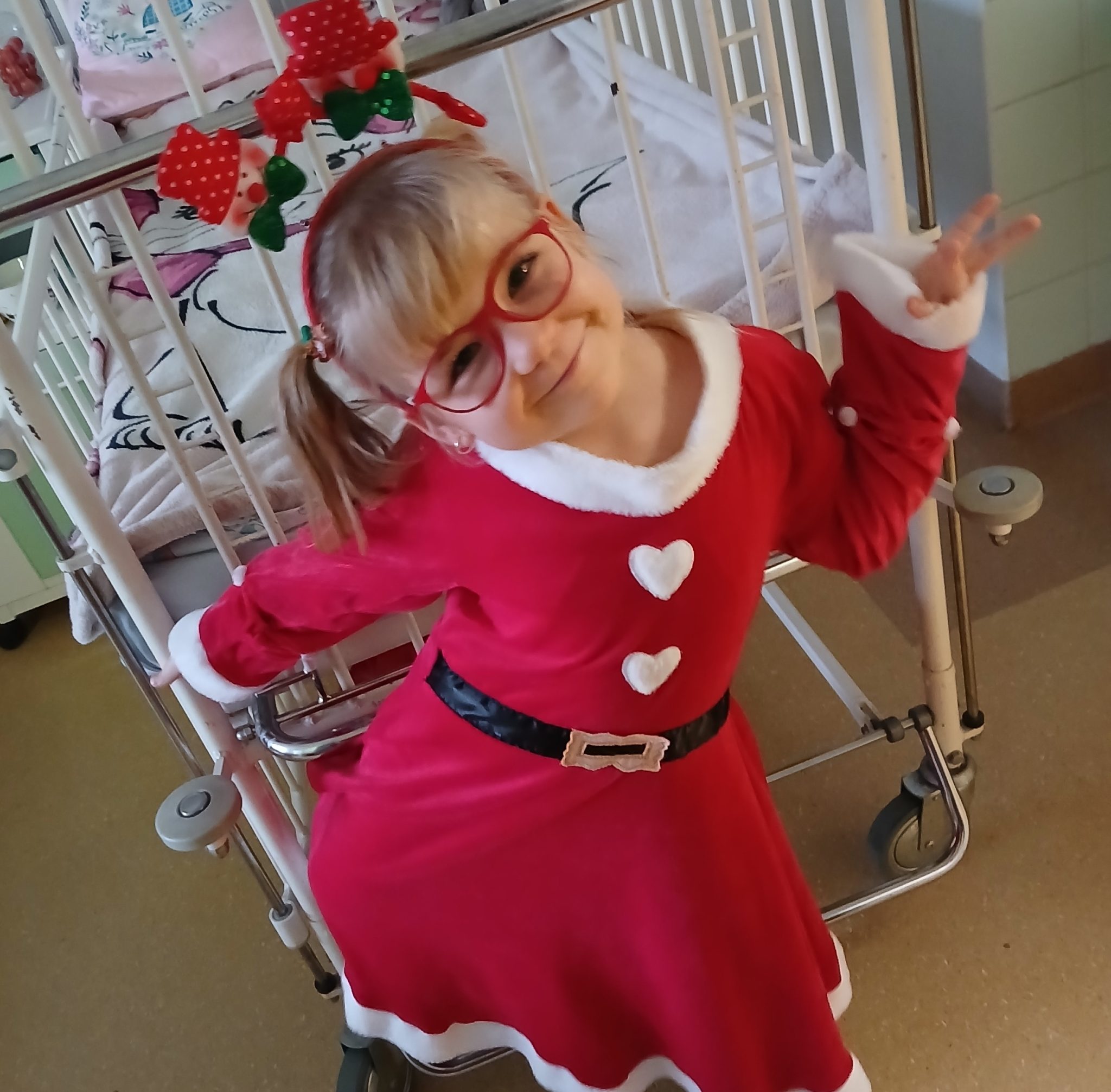 Zrobiliśmy badania w wieku 4 lat. Badania wykazały wadę rozwojową kręgosłupa na pograniczu szyjno-piersiowego. Anielka ma też wadę wzroku – Astygmatyzm i zespół Std: zaburzenie ruchomości oczu.