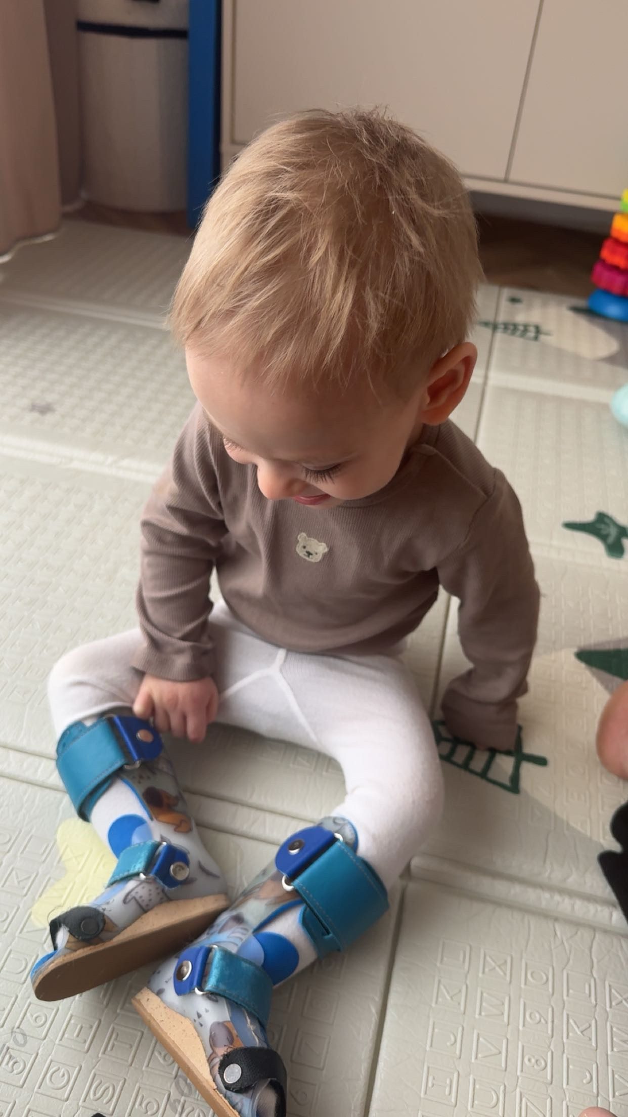 Nasz wojownik codziennie jest rehabilitowany w domu, dodatkowo ma stałą fizjoterapeutkę oraz uczęszcza do ośrodka wczesnej interwencji. Aktualnie Antoni ma 2,5 roku. Nie siedzi, nie pełza, nie raczkuje, nie chodzi, nie mówi.