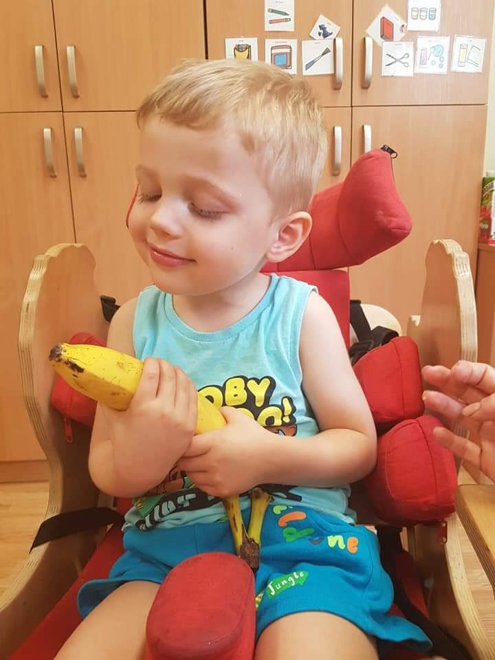 Antoś ma już 8 lat, zmiany w głowie spowodowane przez lata choroby są przyczyną tego, że Antoś się nie komunikuje, nie sygnalizuje potrzeb. Żyje we własnym świecie. Jesteśmy po trzech podaniach komórek macierzystych, niestety podaż macierzy została wstrzymana w całym kraju. Zaczęliśmy niedawno terapię elektrostymulacji metodą VitalStim®, już zaczynają być widoczne efekty.