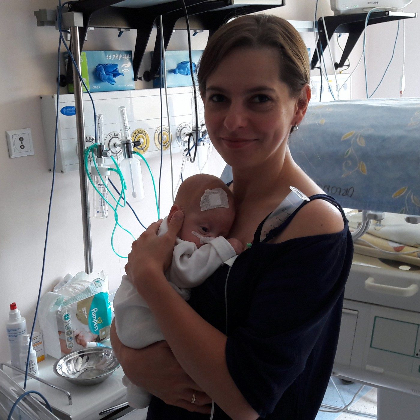 Antoś to skrajny wcześniak. Walczy z mózgowym porażeniem dziecięcym. Urodził się w 25 tc z wagą 600 g. Został niedotleniony i wystąpiły wylewy dokomorowe w wyniku których musi mieć zastawkę komorowo-otrzewnową. Naszego Małego Wojownika nie ominęła retinopatia, kamica woreczka żółciowego, sepsa, niewydolność krążeniowa, problemy z napięciem mięśniowym, opóźniony rozwój psychoruchowy, uszkodzony nerw wzrokowy.