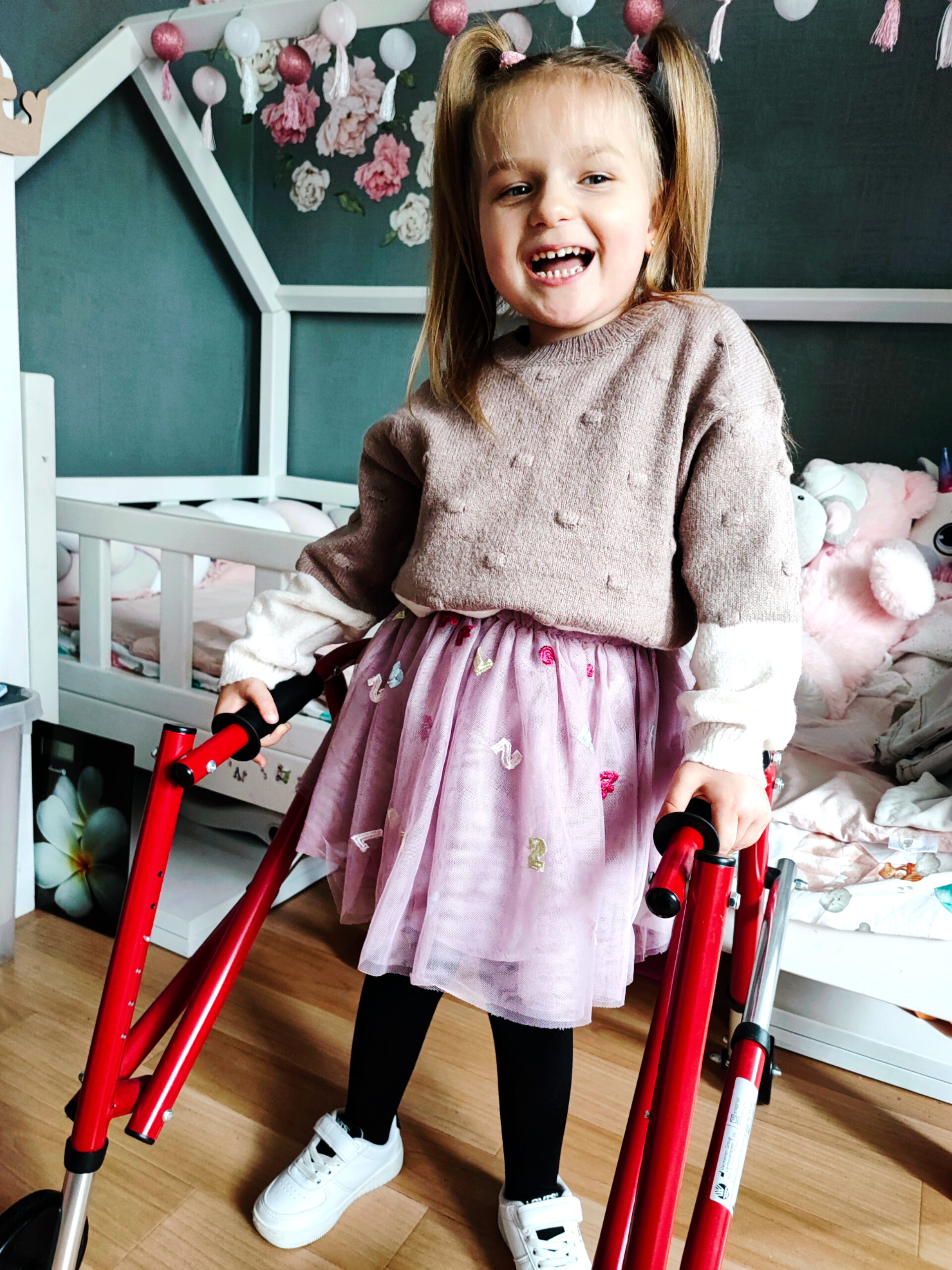 Co prawda nie ma leku, który ją uleczy, ale mimo tego możemy obserwować u naszej córki postępy w rozwoju ruchowym. Tosia z tygodnia na tydzień ma coraz więcej sił. Po mieszkaniu przemieszcza się głównie raczkując, ale potrafi też stać w chodziku/balkoniku, w którym mamy nadzieję kiedyś postawi swoje pierwsze kroki. Nie moglibyśmy jednak tego obserwować, gdyby nie wielogodzinna rehabilitacja, wyjazdy na kosztowne turnusy rehabilitacyjne i zapewnienie Tosi odpowiedniego sprzętu, których będzie wymagała przez wiele lat, a być może przez całe życie. Każdemu za okazanie dobrego serca w stronę naszej córeczki serdecznie dziękujemy!