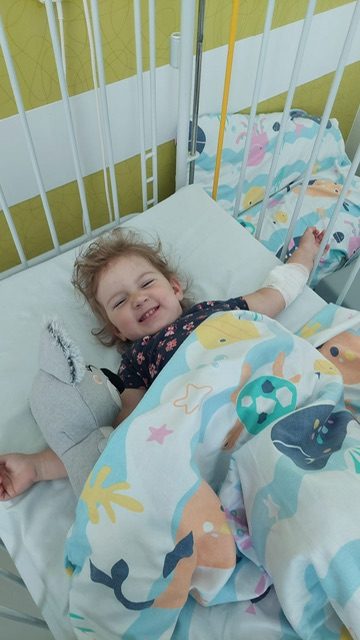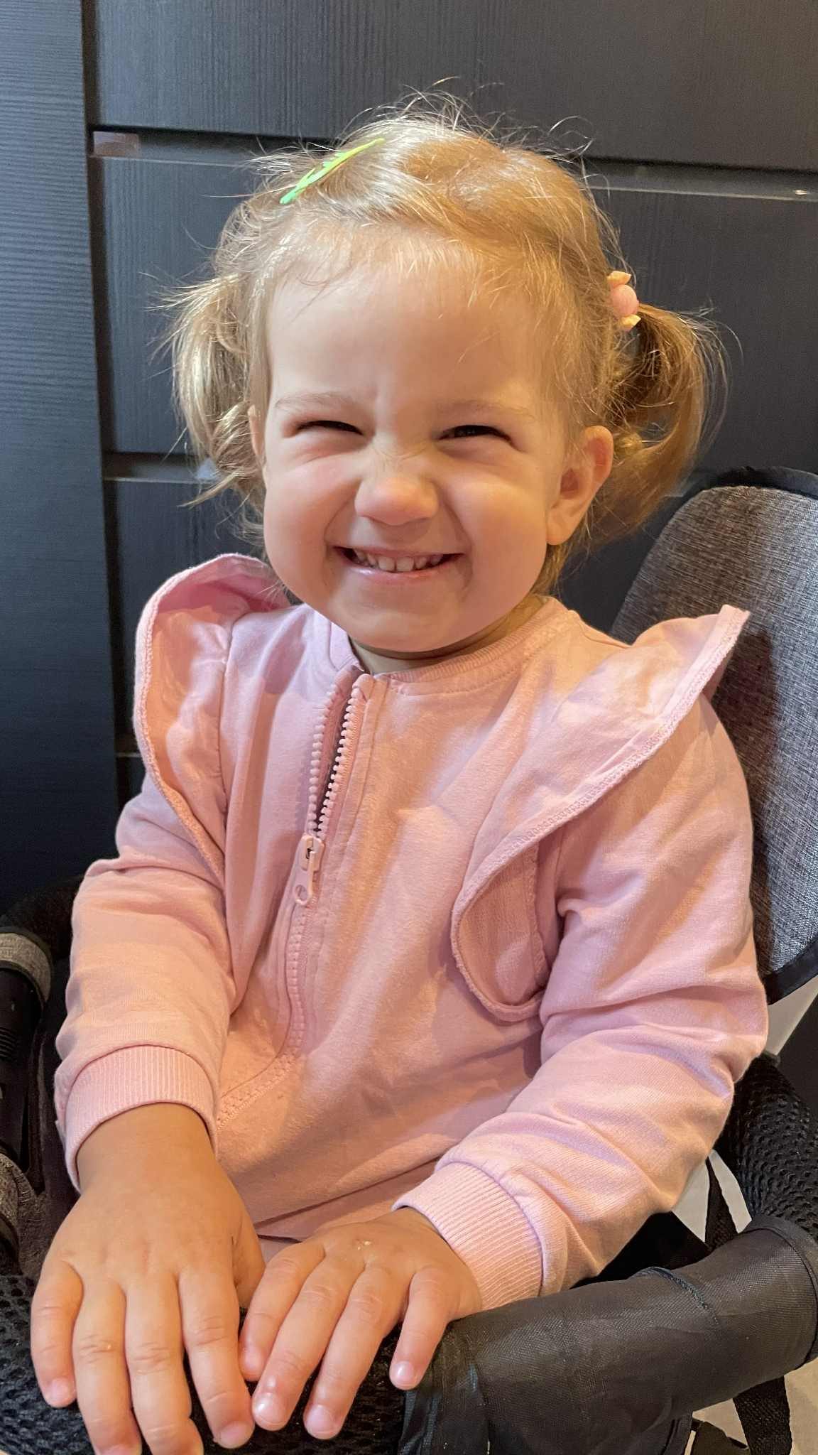 Hej! Jestem Tosia. Urodziłam się dwa lata temu. Niestety, gdy jeszcze byłam w brzuszku mamy okazało się, ze jestem nieuleczalnie chora. Po urodzeniu lekarze mnie operowali. Urodziłam się z wadą kręgosłupa (rozszczepem- przepuklina oponowo-rdzeniowa) oraz wodogłowiem.