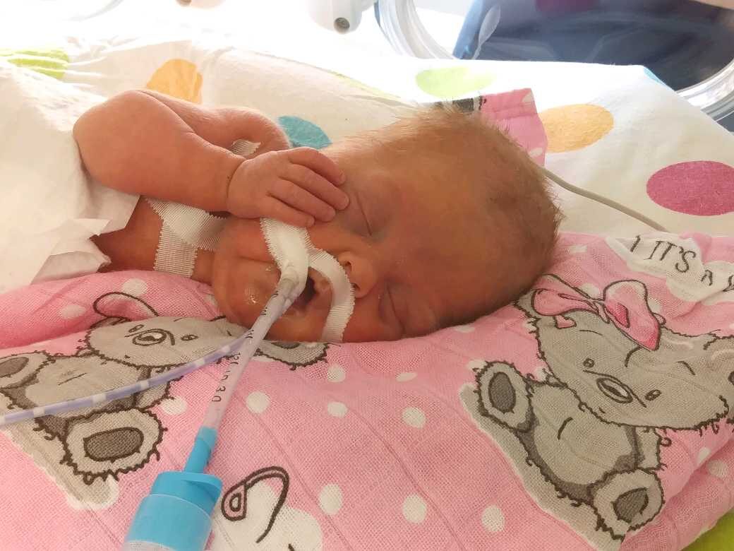 Apolonia, urodzona w 24. tygodniu ciąży z wagą zaledwie 650 gramów, zmaga się z poważnymi komplikacjami typowymi dla skrajnego wcześniactwa. Pierwsze miesiące życia spędziła na oddziale intensywnej opieki noworodków, gdzie przeszła trzy operacje, liczne transfuzje krwi, antybiotykoterapie i była wspomagana w oddychaniu.
