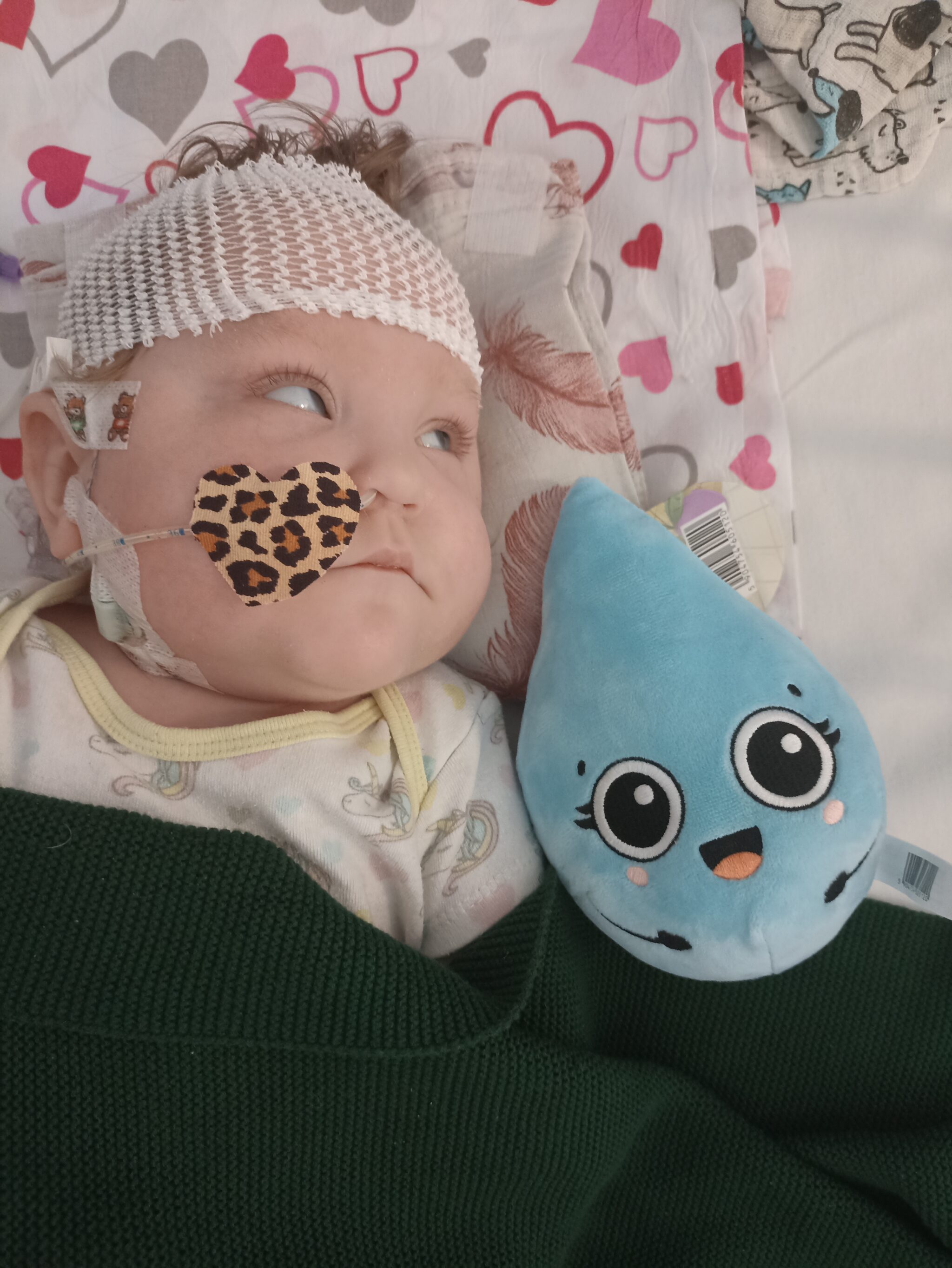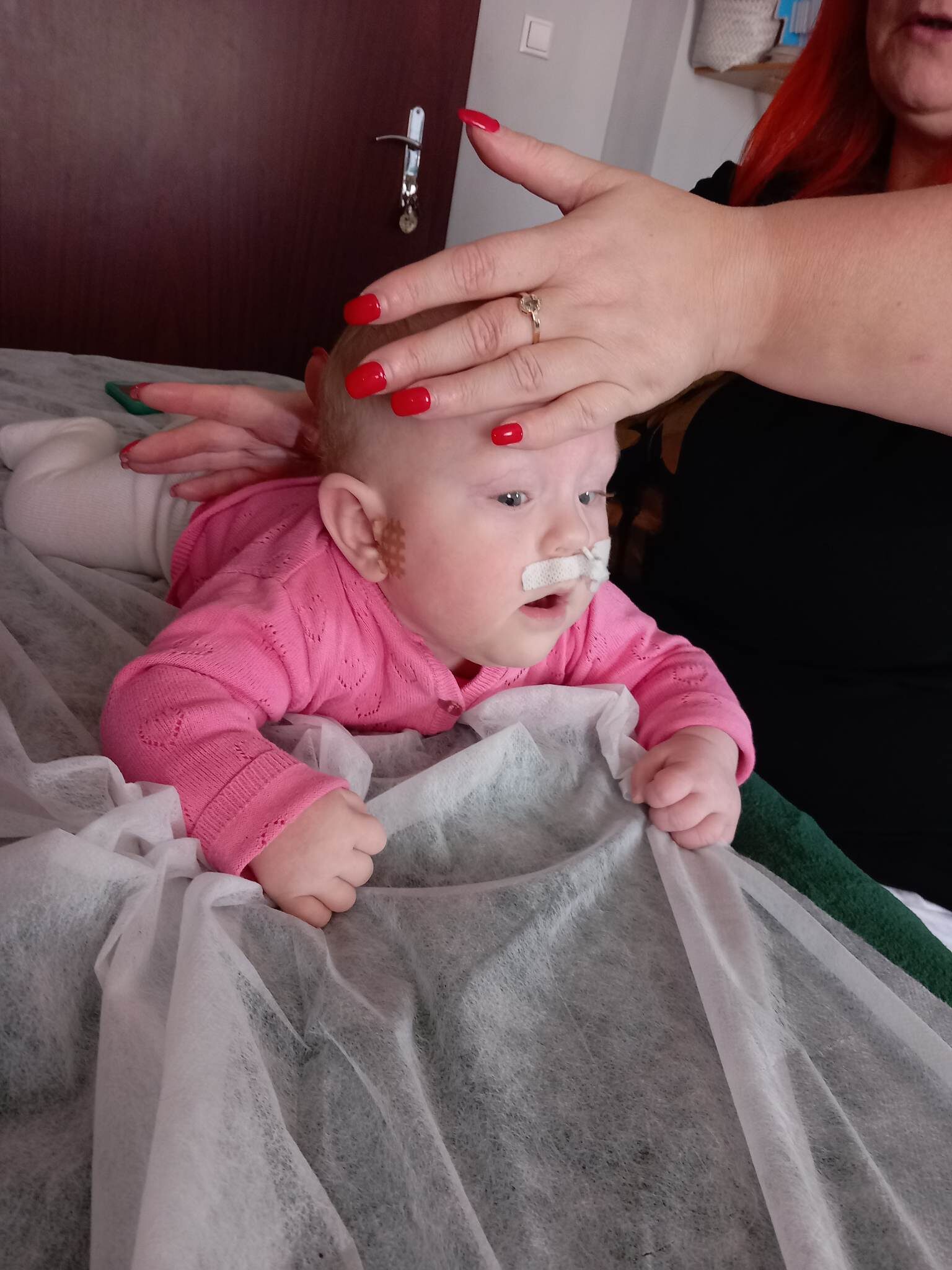 W wyniku tych zdarzeń Apolcia zmaga się ze spastycznym porażeniem czterokończynowym, które wymaga bardzo intensywnej rehabilitacji. Przez rok udało się osiągnąć wiele, jak na dziecko, które kolejny raz w życiu „startowało” od zera. Jednak w styczniu 2025 roku kolejna operacja, tym razem ortopedyczna, przyniosła niespodziewanie kolejne problemy – tym razem z oddechem. Aktualnie zaczynamy drogę diagnostyczną, by poprawić tor oddechowy Apolci ponieważ coraz częściej wsytępują u Niej bezdechy. Codzienna, intensywna rehabilitacja prowadzona na wielu płaszczyznach przynosi efekty, ale to ciężka praca Apolonii, Jej determinacja i upór dają nam najwięcej siły do działania. Wspierają nas tyflopedagog, neurologopeda i logopeda oraz liczni rehabilitanci. Pola uczęszcza na rehabilitację metodą Bobath, MEDEK, terapię neurotaktylną, jest pod opieką wielu specjalistów, którzy dokładają wszelkich starań, by wspierać rozwój naszego dziecka.