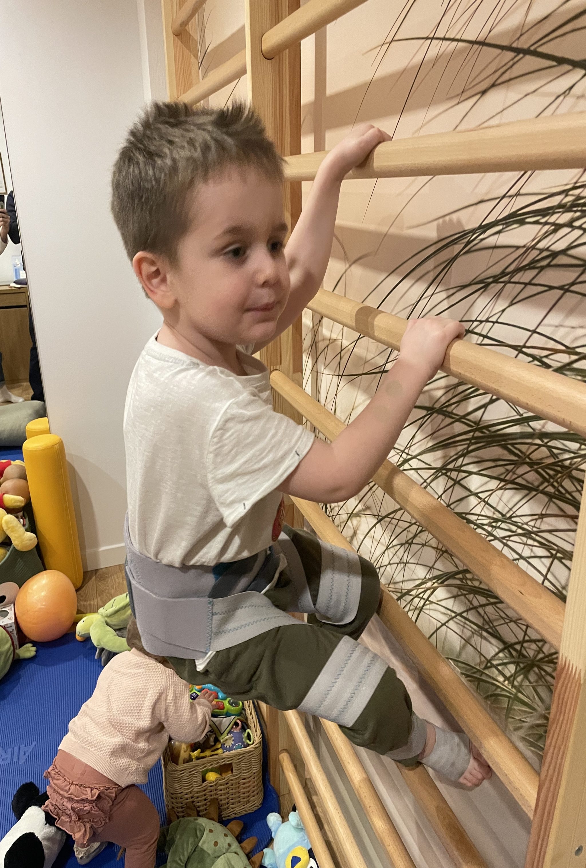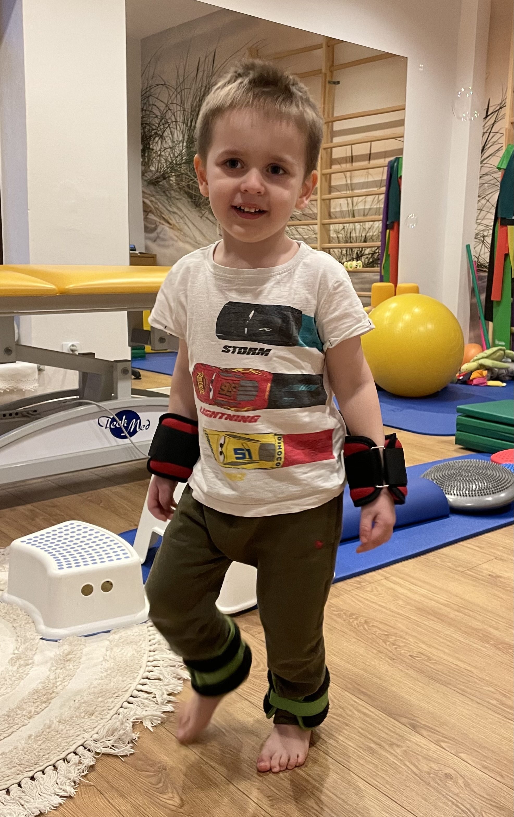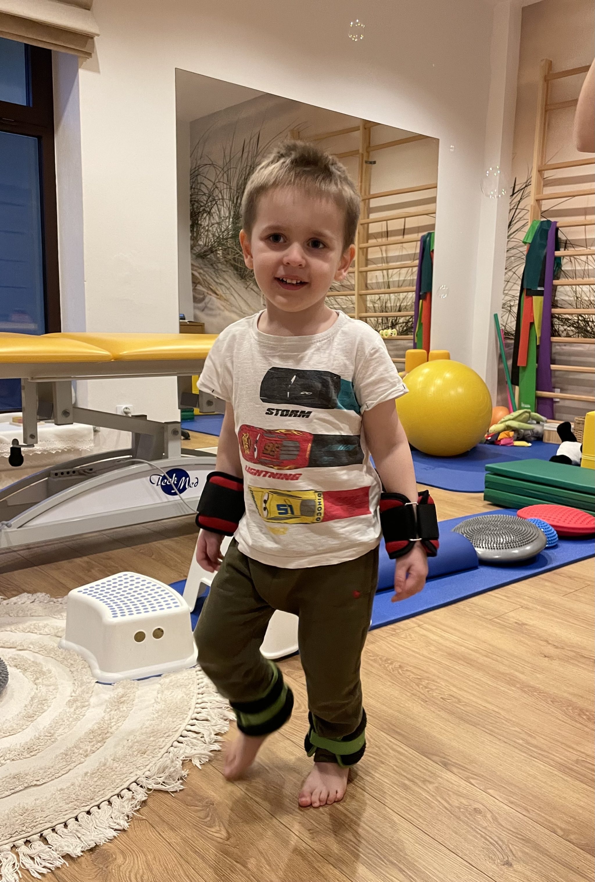 Dzięki intensywnej rehabilitacji – zarówno na sali, jak i na basenie uczę się nowych umiejętności, a terapia ręki i zajęcia logopedyczne pomagają mi rozwijać się i komunikować ze światem. Codziennie ćwiczę w ortezach, a moje mięśnie poddawane są elektrostymulacjom. Regularnie uczęszczam na wizyty wczesnego wspomagania rozwoju, które dają mi szansę na lepszą przyszłość.
