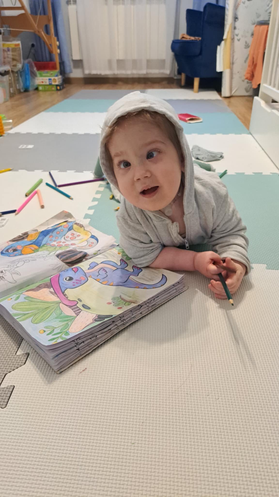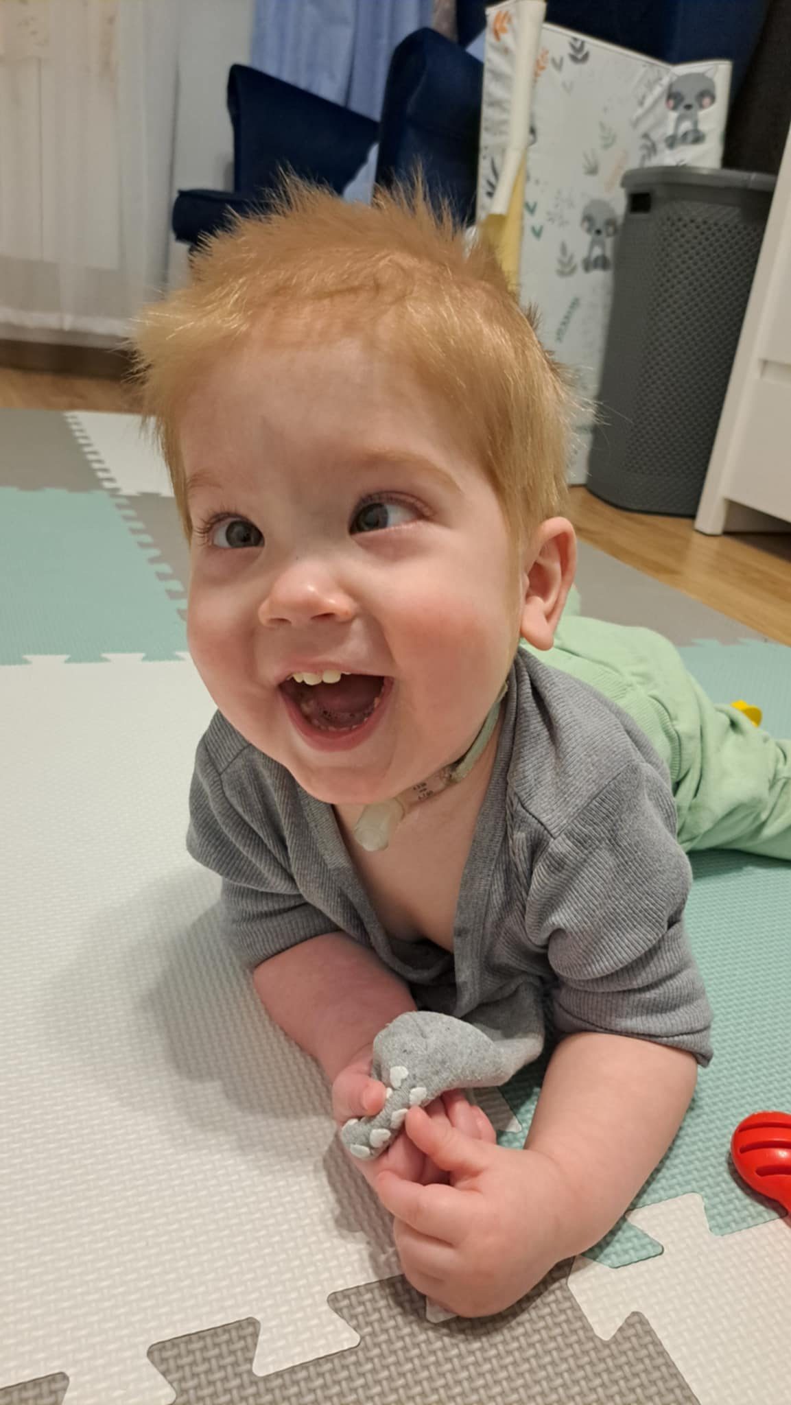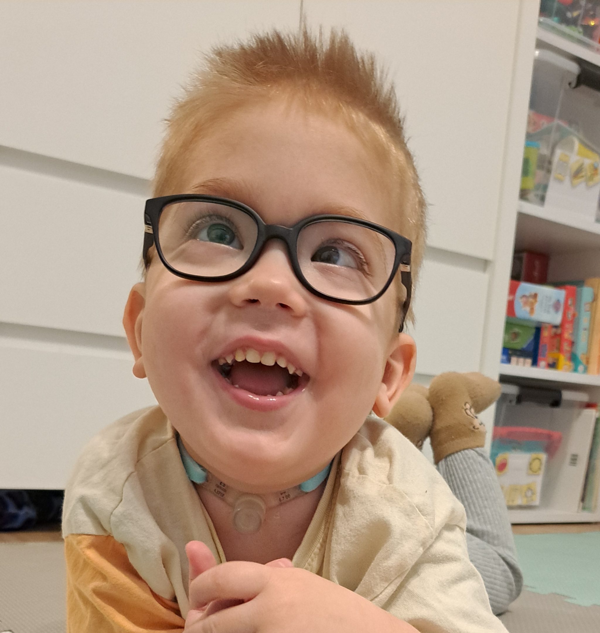 To wszystko nie odbiera mi radości do życia. Chcę się rozwijać i stawać coraz bardziej samodzielny. W ostatnim roku znacznie wzmocniłem mięśnie dzięki czemu sprawnie raczkuję, siadam oraz nawet wstaję przy meblach. Komunikuję się sprawnie za pomocą kilkudziesięciu gestów, a także mówię pierwsze słowa. Nie mam lekko, ale bardzo się staram! Potrzebuję stałej opieki lekarzy (neurologa, laryngologa, audiologa, urologa, nefrologa, chirurga, pulmonologa, gastroenterologa, okulisty) oraz rehabilitacji (ruchowej, oddechowej, neurologopedy, AAC, elektrostymulacji).