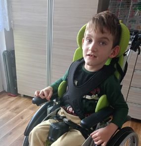 Choć mam dopiero 7 lat, przeszedłem już dwie poważne operacje jelit. Przez długi czas towarzyszył mi respirator oraz specjalistyczna aparatura medyczna. Choruję na spastyczne mózgowe porażenie dziecięce. Nie potrafię samodzielnie siedzieć, chodzić ani raczkować. Na co dzień poruszam się na wózku inwalidzkim.