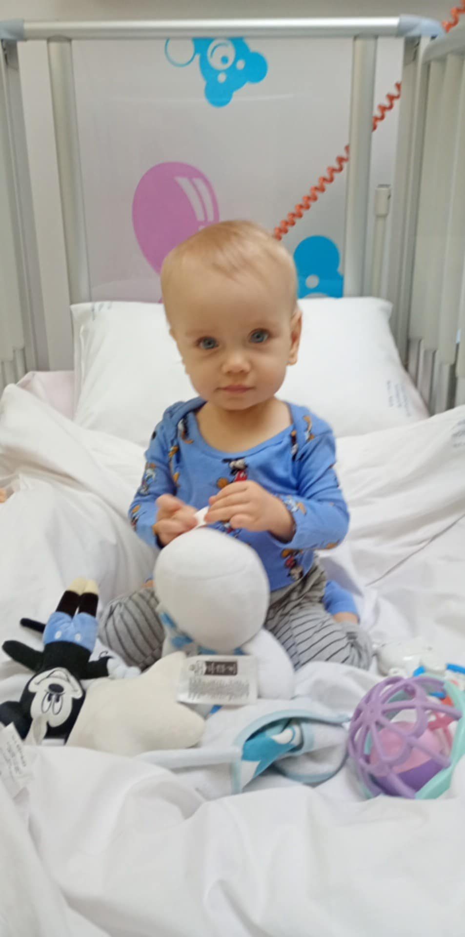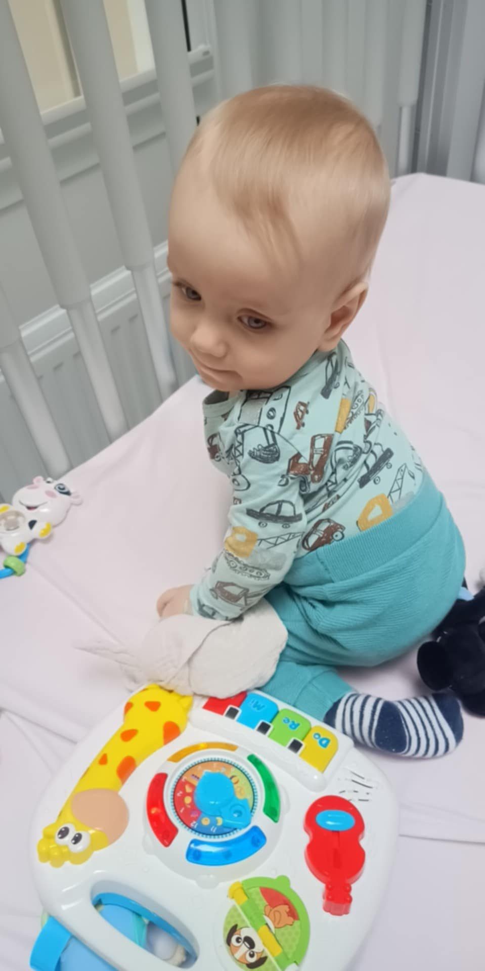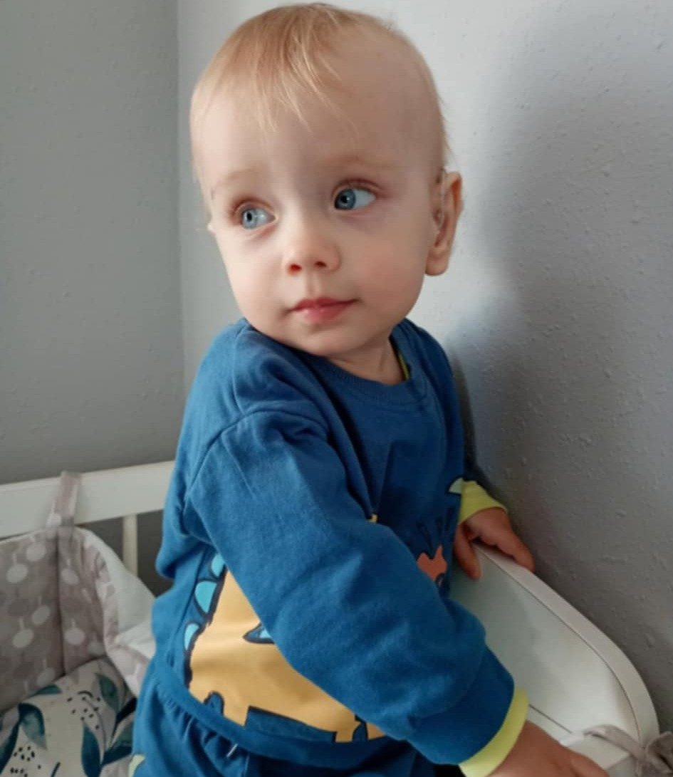 Niestety nie potrafi jeszcze mówić ani chodzić. Jego rozwój jest bardzo opóźniony, mocno odstaje od swoich rówieśników.