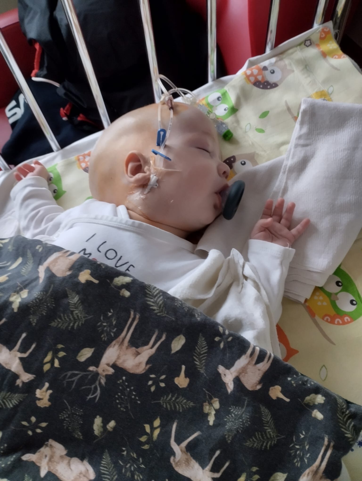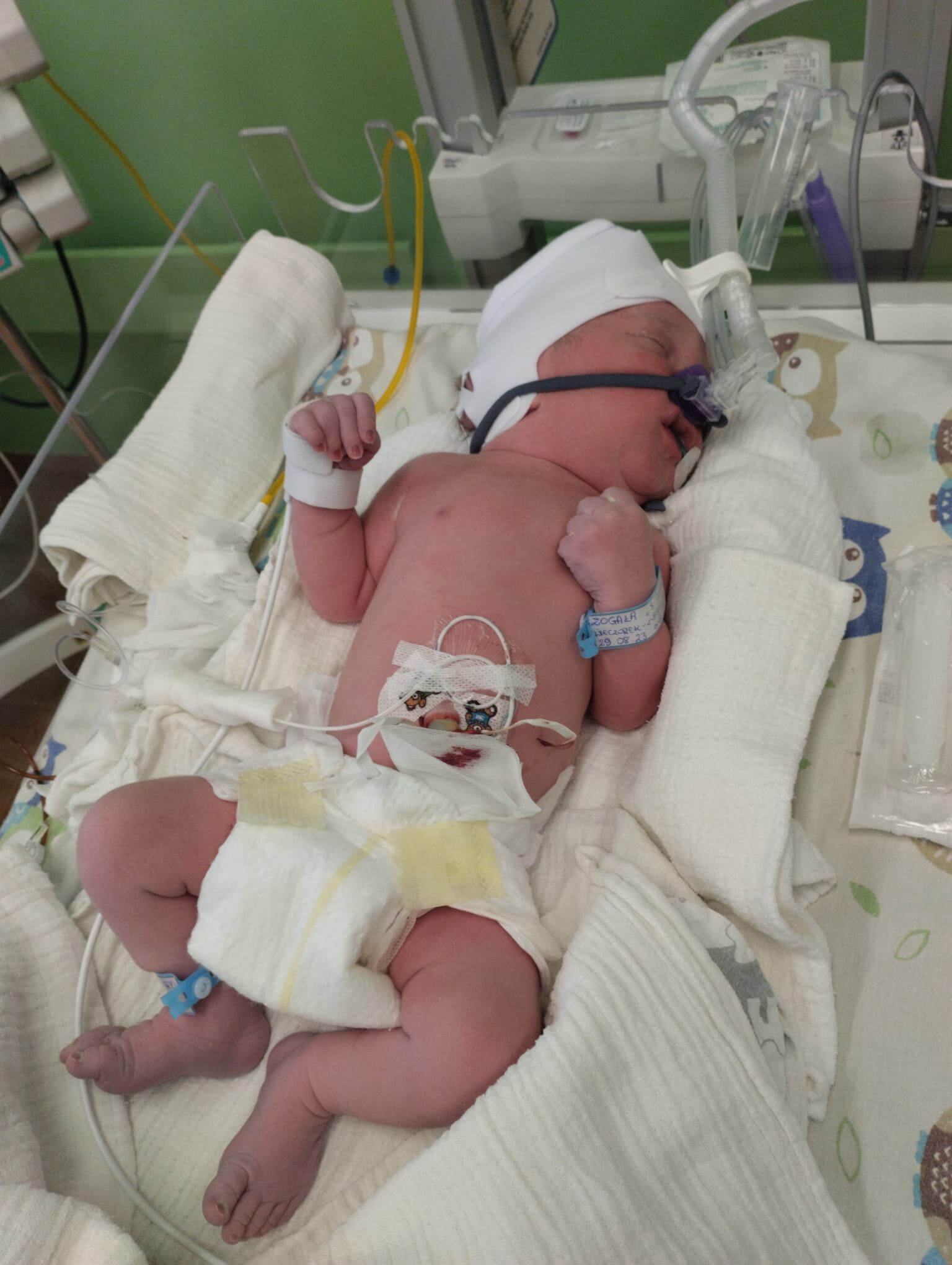 Bruno urodził się 29.08.2023 r. w ciężkiej zamartwicy urodzeniowej, otrzymując 1 punkt w skali Apgar i już na początku swojej drogi musiał być reanimowany. Choruje na zespół Ehlersa-Danlosa, urodził się z kraniosynostozą, ma wrodzone, obniżone napięcie mięśniowe oraz poszerzoną aortę występującą. W związku z czym przyjmuje codziennie stałe leki od 6 dnia życia.