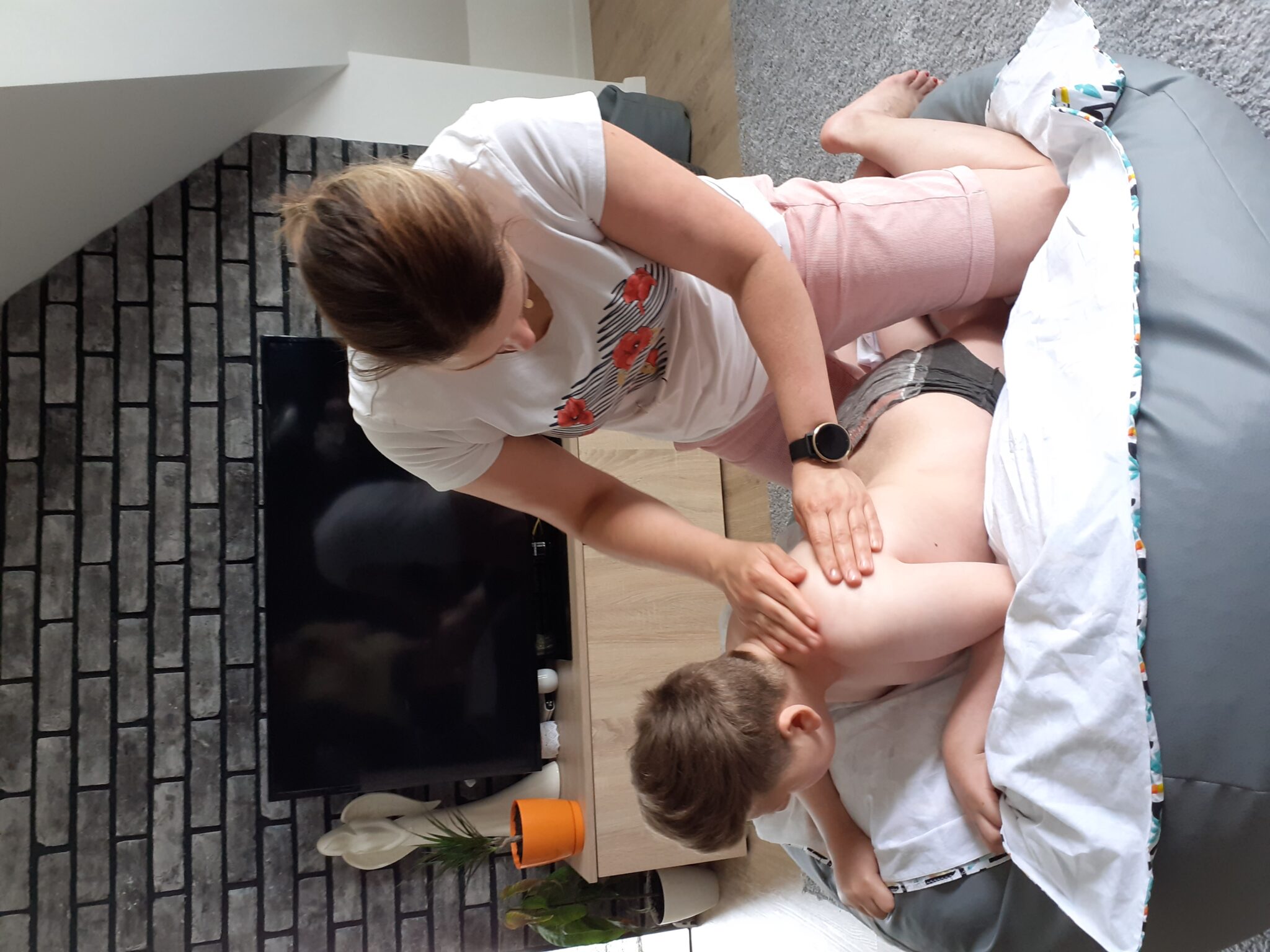 Mój kochany syn – Dawid, w wyniku komplikacji okołoporodowych cierpi na czterokończynowe dziecięce porażenie mózgowe – najcięższą formę porażenia. Obecnie dziesięcioletni chłopiec jest całkowicie zależny od osób trzecich – ma kłopot z utrzymaniem głowy w pozycji pionowej, nie kontroluje mięśni okołoruchowych, nie chodzi, nie potrafi siedzieć bez podtrzymywania, nie mówi. U Dawida zdiagnozowano również padaczkę, jest karmiony dojelitowo, często przebywa w szpitalu ze względu na infekcje układu oddechowego, pokarmowego i moczowego.