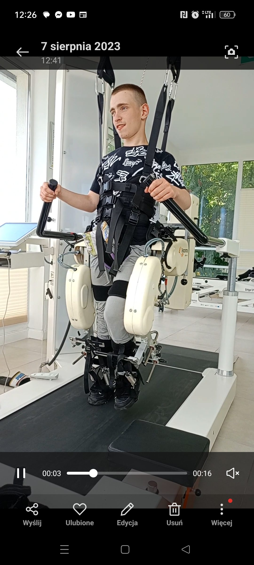 Od urodzenia jest intensywnie rehabilitowany. Obecnie uczy się w Specjalnym Ośrodku Szkolno-Wychowawczym i regularnie korzysta z rehabilitacji oraz wsparcia psychologicznego.