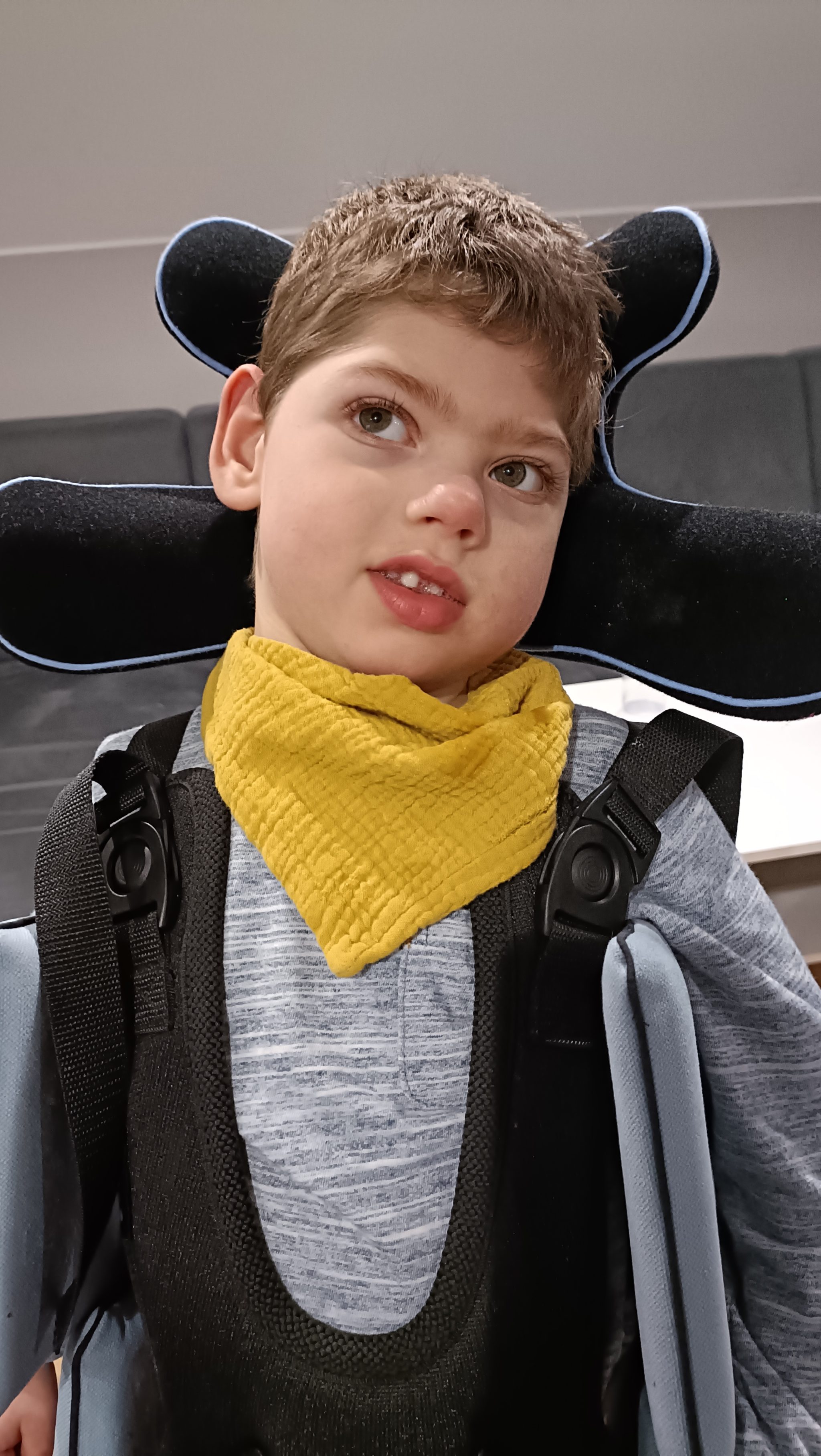 Dominik mimo tego, że ma prawie 4 lata nie siedzi, nie chodzi i nie mówi, ale każdego dnia bardzo się stara i ciężko pracuje na rehabilitacji robiąc postępy. Nasz Synek jest pod opieką kilku poradni specjalistycznych takich jak neurologiczna, kardiologiczna, endokrynologiczna, ortopedyczna i gastroenterologiczna. W każdym tygodniu dzielnie uczęszcza na kilka zajęć ruchowych różnymi metodami, ćwiczenia z neurologopedą, tyflopedagogiem i terapeutą SI.