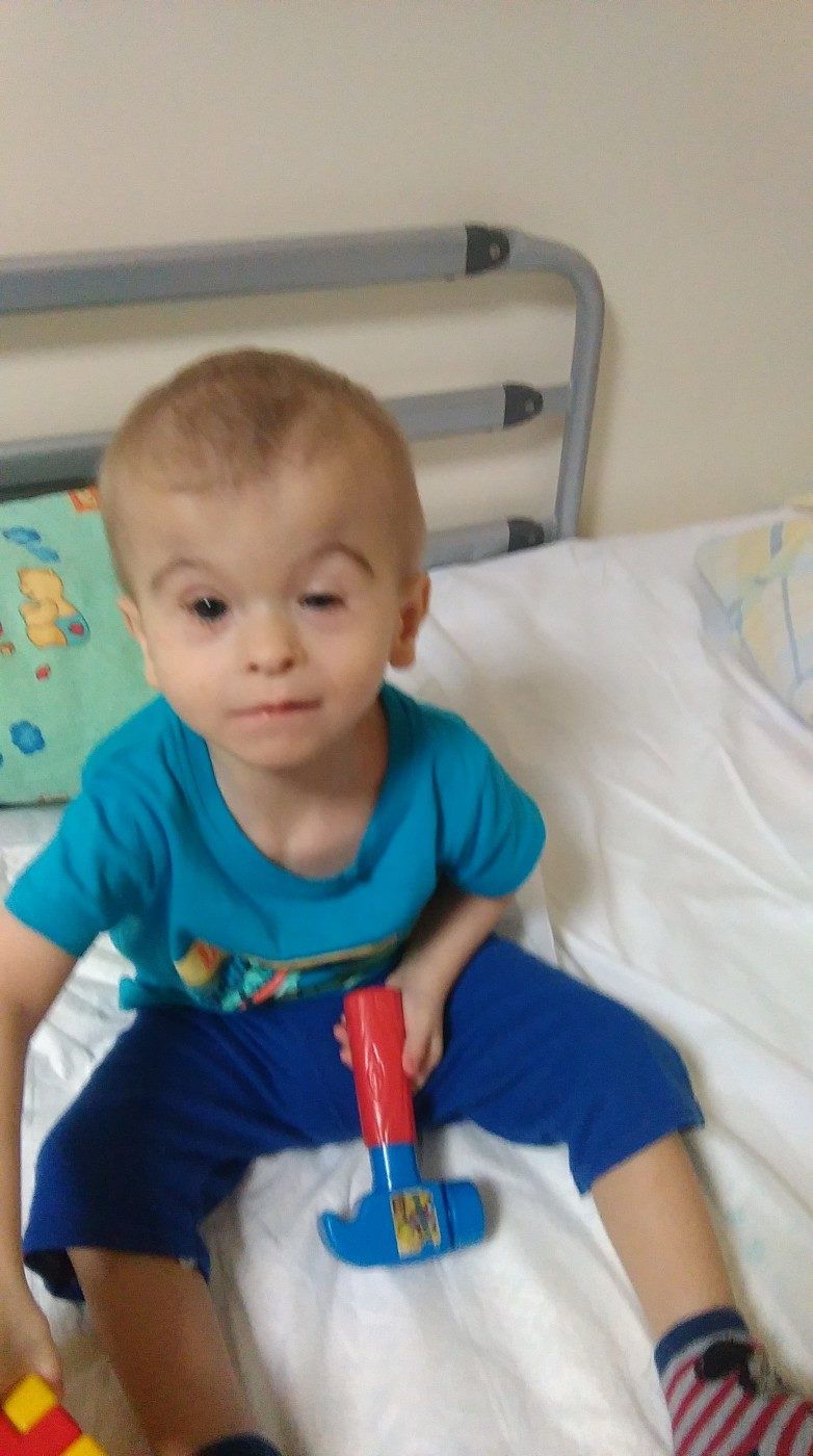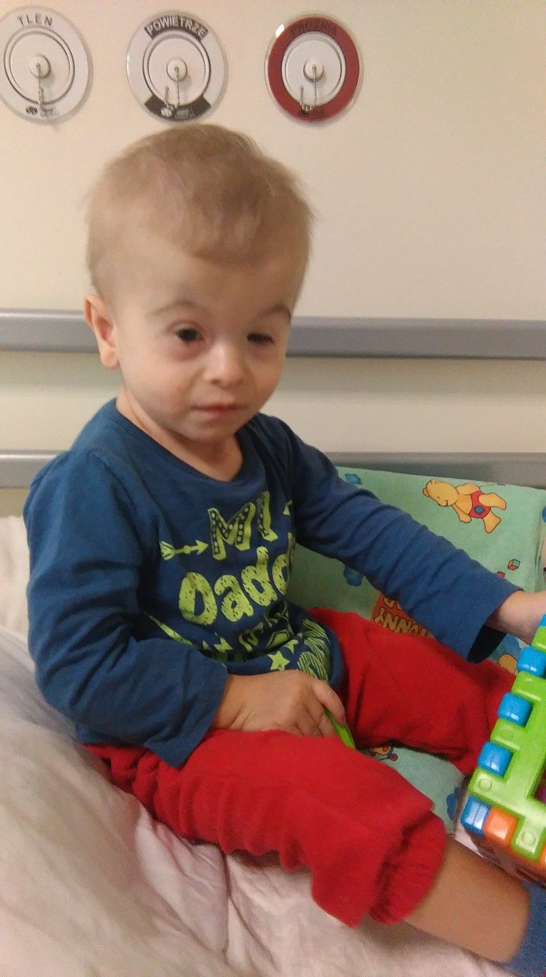Dominik przyszedł na świat z wieloma wadami wrodzonymi – wadą serca, dysmorfią twarzy, skróconymi szparami powiek, wadami układu kostno – szkieletowego, obustronnym niedosłuchem odbiorczym, przewlekłą niewydolnością nerek oraz wadą tarczy nerwu wzrokowego.