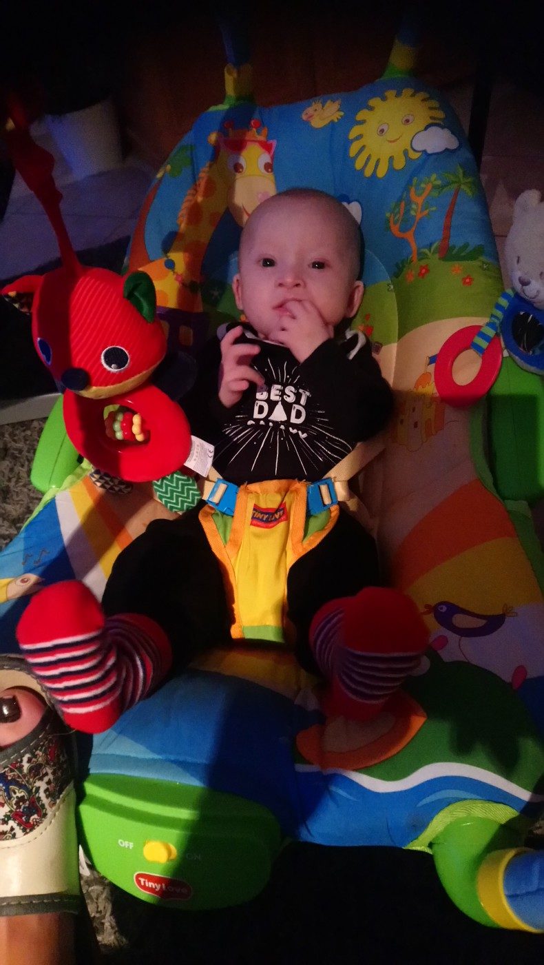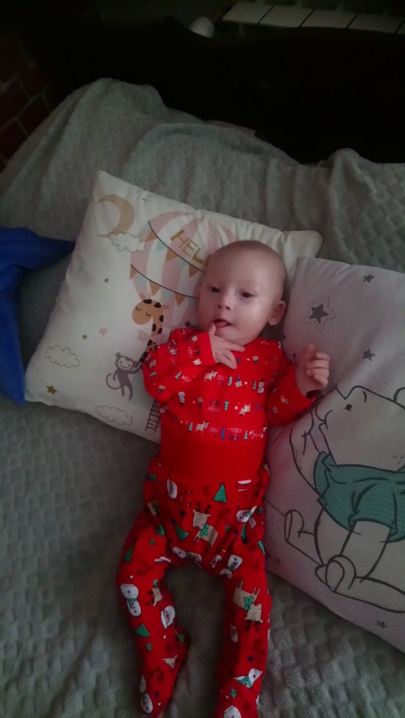 Eryk urodził się w lipcu 2019 roku. Jeszcze w okresie płodowym rozpoznano u Eryczka wadę serca pod postacią ubytku przegrody przedsionkowo-komorowej i zwiększenia aorty wstępującej. Obecnie synek objęty jest opieką kardiologiczną i ma zaplanowany termin zabiegu. Ponadto cały czas jest pod kontrolą lekarzy innych specjalizacji: endokrynologa, audiologa i oczekuje na wizytę u neurologa. Jesteśmy także w trakcie badań genetycznych pod kątem Zespołu Downa.