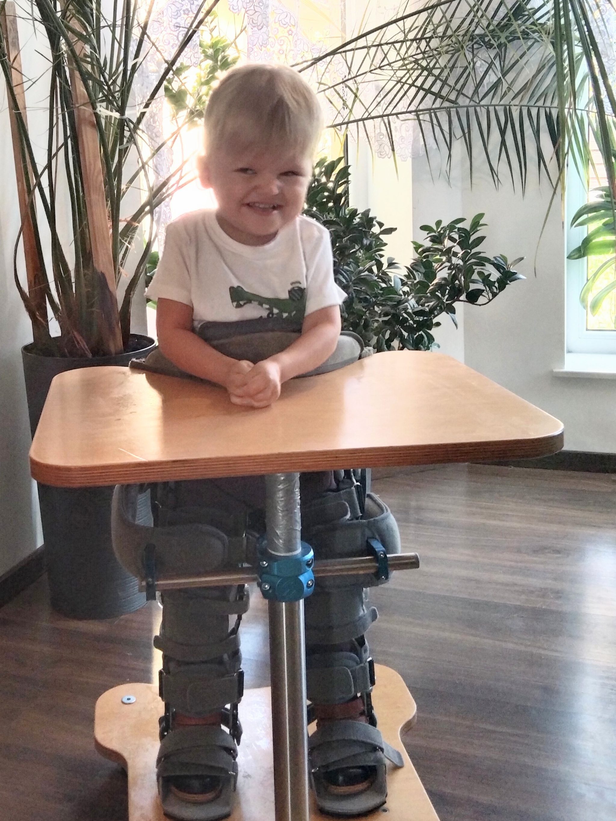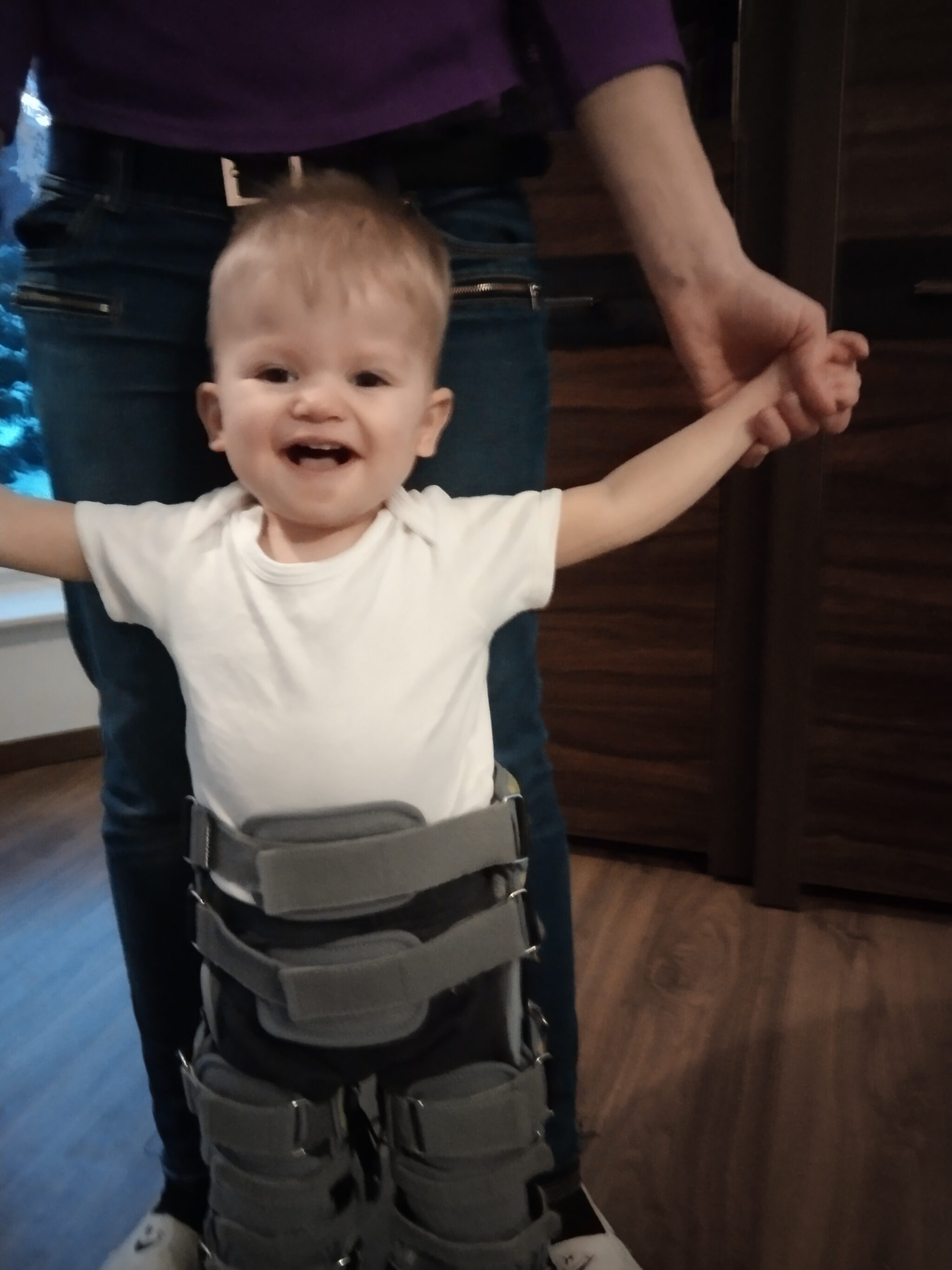 Obecnie oprócz częstych wizyt u specjalistów, nasz syn codziennie jest rehabilitowany. Niestety, po ukończeniu 3 roku życia, wciąż sam nie siedzi, nie raczkuje, nie chodzi, nie mówi, ma problemy ze wzrokiem a przykurcze dłoni uniemożliwiają samodzielne jedzenie i picie. Pomimo tego, dzięki zapewnionej rehabilitacji, leczeniu i opiece, jest bardzo kochanym i pogodnym dzieckiem. W tym miejscu, zwracamy się do Państwa z gorącą prośbą o wsparcie. Zebrane środki przeznaczymy na leczenie i ciągłą rehabilitację syna.