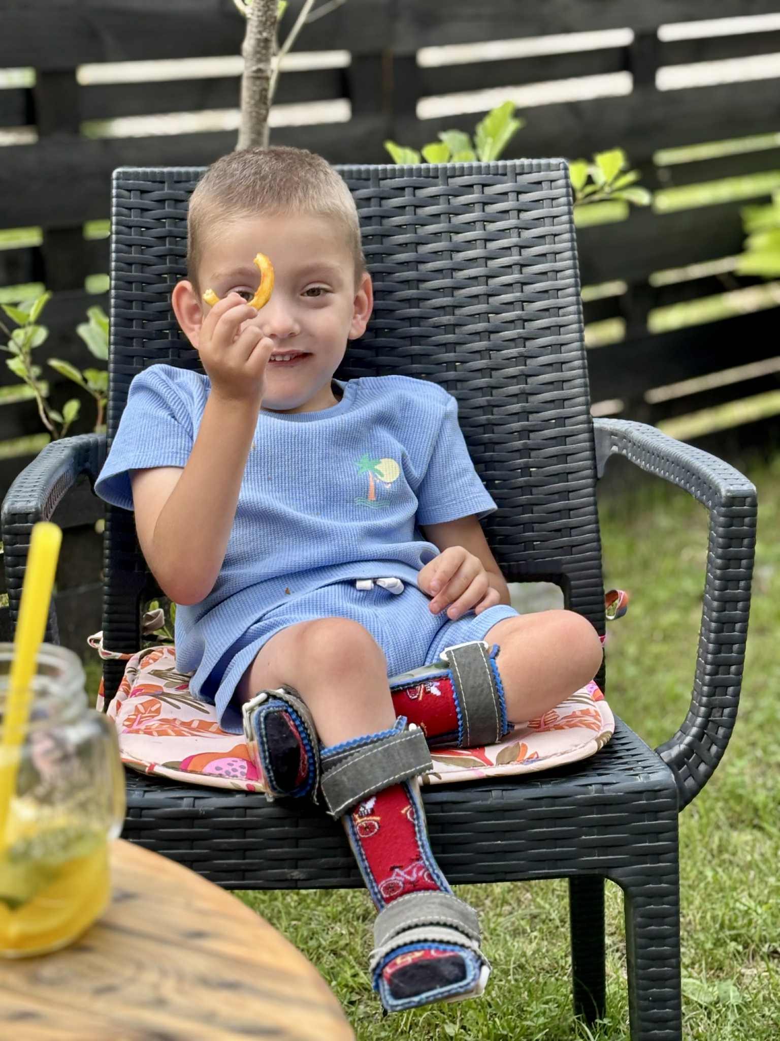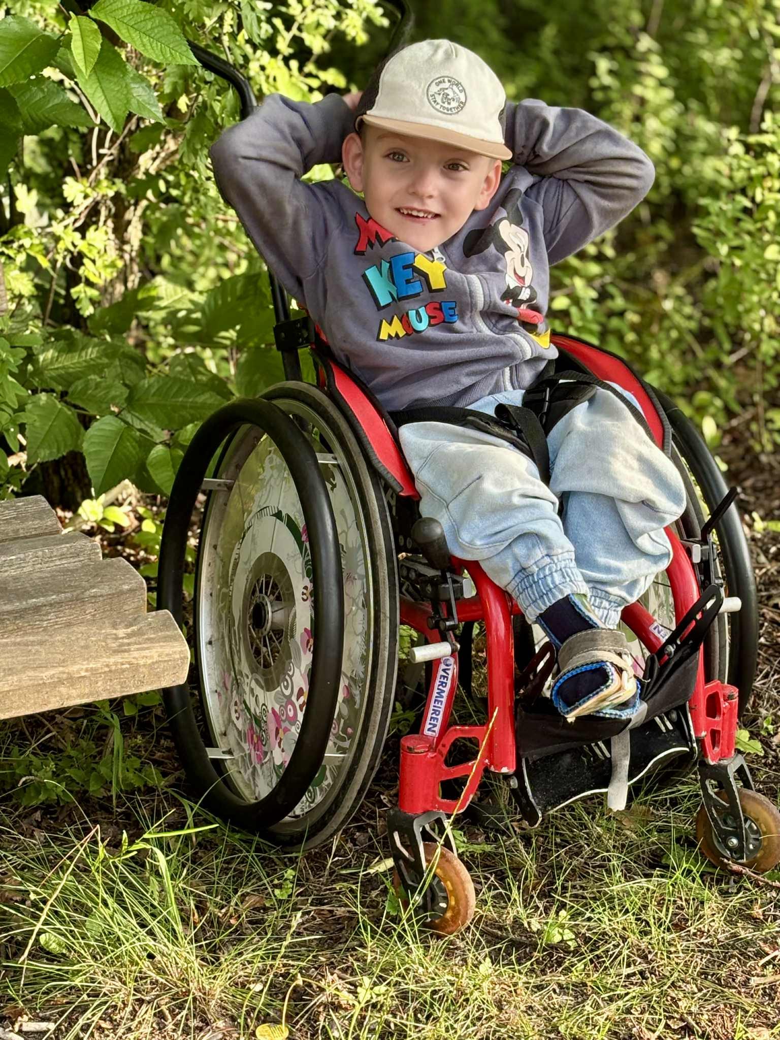 Ze względu na swoją niepełnosprawność i ograniczenia Fabian porusza się, pełzając po podłodze oraz przy pomocy wózka inwalidzkiego. Siedzi samodzielnie na podłodze, ale wymaga podporu