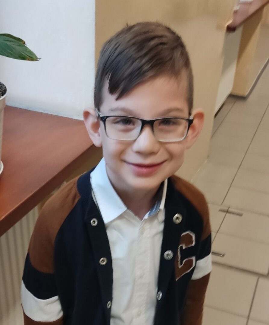 Wada wzroku niestety pogłębia się, a jedyną nadzieją jest kosztowna soczewka twarda. W ostatnim roku przeszedłem trzy operacje na brzuszku, podczas których pojawiły się komplikacje. Mimo leczenia moje oczko się pogarsza, a widzenie jest coraz słabsze. Ostatnie badania potwierdziły też, że mam dziecięce porażenie mózgowe i osłabioną prawą stronę ciała. Diagnoza wykazała liczne torbiele na płacie czołowym mózgu, które powodują silne bóle. Wkrótce czeka mnie również operacja na ścięgna Achillesa, aby poprawić moją sprawność i zmniejszyć ból przy chodzeniu. Rodzice i ja bardzo dbamy o moją rehabilitację i terapie, które pomagają mi lepiej funkcjonować.