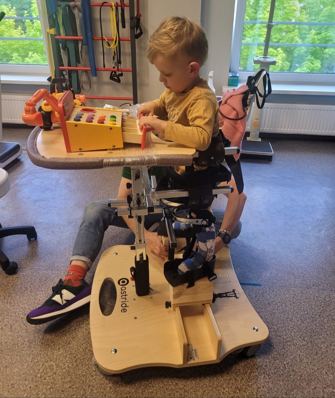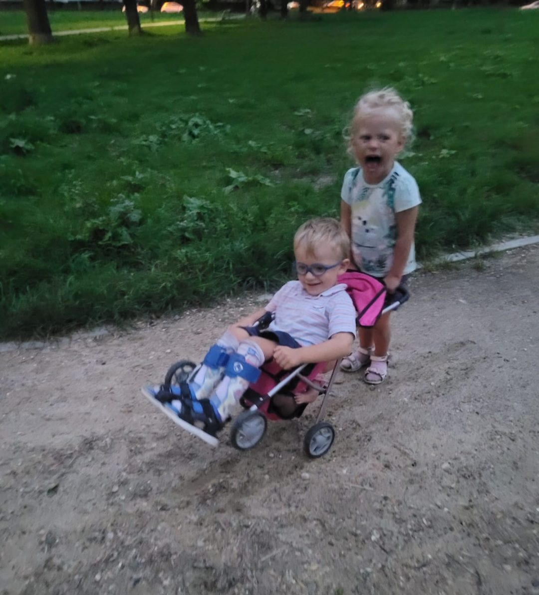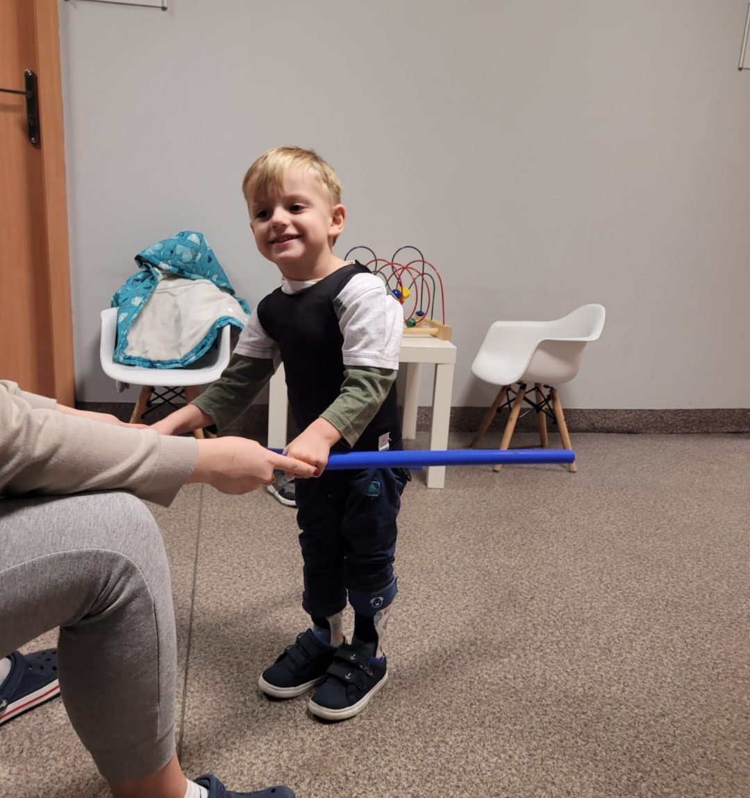 Doszły także problemy kardiologiczne. U synka zdiagnozowano dziecięce porażenie mózgowe czterokończynowe z przewagą kończyn dolnych, dysplazję bioder i stopy końsko-szpotowate. Dodatkowo doszła również wada wzroku. Filipek ma 4 latka. Jesteśmy pod stałą opieką wielu specjalistów, tj. neurologa, kardiologa, okulisty, ortopedy, chirurga, logopedy, psychologa i lekarza rehabilitanta. Synek bardzo często choruje, prawdopodobnie to konsekwencje wcześniactwa – słabo rozwinięta odporność i płuca, więc doszły problemy pulmonologiczne i alergiczne. Filipek nadal samodzielnie nie siedzi ani nie chodzi, ale jest nadzieja na poruszanie się o balkoniku lub w przyszłości przy pomocy trójnogów (specjalnych kul). Do lepszego rozwoju syna mamy sprzęty ortopedyczne (ortezy, buty do ortez, pionizator, dynamiczny stabilizator posturalny), z których synek wyrasta i trzeba będzie kupić nowe, większe. Stale uczestniczymy w zajęciach rehabilitacji, logopedii i integracji sensorycznej. Mamy zalecone także zajęcia na basenie, różne stymulacje mięśni, tj. elektrostymulacje czy masaże głębokie, a także wszelkie sposoby wzmacniania przy udziale specjalistycznych sprzętów oraz wyjazdy na turnusy rehabilitacyjne. Prawdopodobnie czeka nas także zabieg ortopedyczny, a w przyszłości operacja na nóżki. Przed nami ciężka i długa droga w walce o jego sprawność i lepsze funkcjonowanie w przyszłości w społeczeństwie. Filipek coraz więcej rozumie i chciałby chodzić i biegać jak siostra. Synek codziennie ciężko pracuje, ćwiczy na zajęciach i w domu, co zabiera mu czas na zabawę i inne przyjemności. Z Państwa pomocą na pewno uda się nam wiele osiągnąć i dać Filipkowi szansę na lepsze życie.