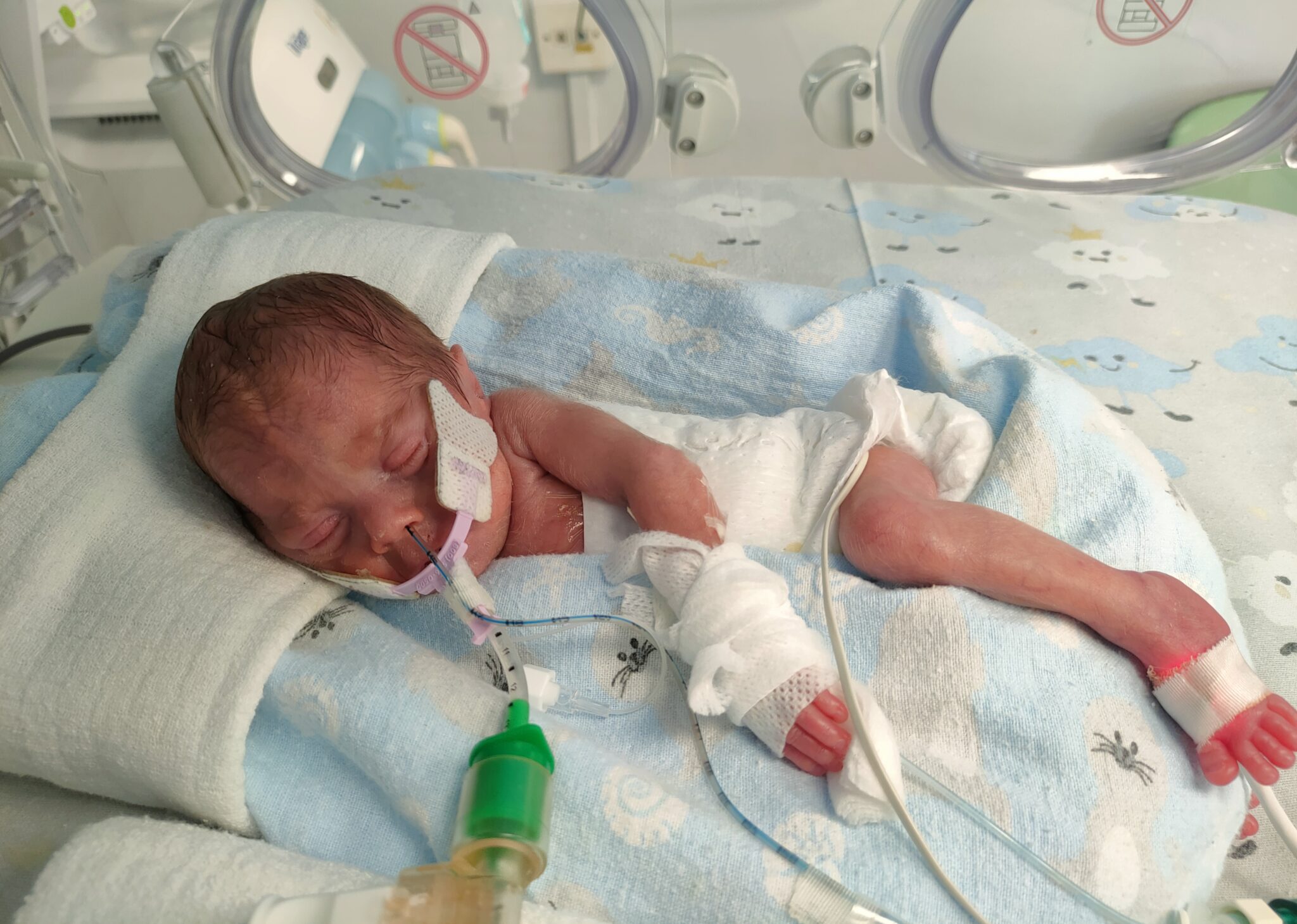 Nasz Franek urodził się 19 marca 2022 roku. Można pomyśleć, że był to najszczęśliwszy dzień naszego życia, jednak wiedzieliśmy, że nasz synek chce przyjść na ten świat za wcześnie, o wiele za wcześnie… Był to dopiero 25 tydzień ciąży, a Franek ważył zaledwie 800 gramów. Franio przebywał w szpitalach przez pierwsze 5 miesięcy swojego życia, z dala od kochających rodziców i siostry. Tak skrajne wcześniactwo już zawsze odbijać się będzie na zdrowiu naszego synka. Franek od samego początku życia zmagał się z wieloma wcześniaczymi powikłaniami m.in. wylewami dokomorowymi III i IV stopnia, drgawkami niemowlęcymi, sepsą, dysplazją oskrzelowo-płucną, retinopatią wcześniaczą, oczopląsem i zaburzonym napięciem mięśniowym. Po pierwszym wypisie ze szpitala, wrócił do niego już dwa dni później z wodogłowiem pokrwotocznym. Konieczne było wstawienie zastawki komorowo-otrzewnowej.