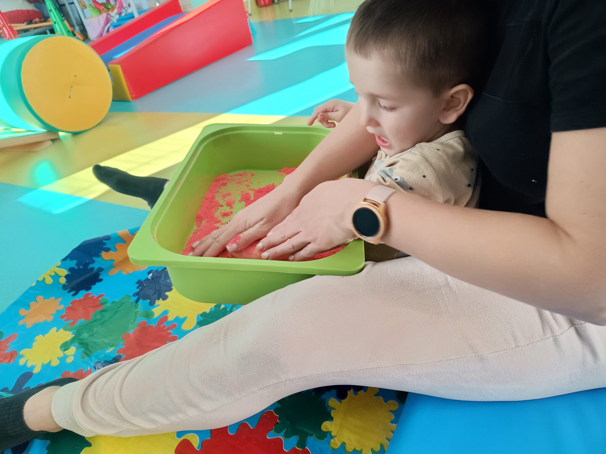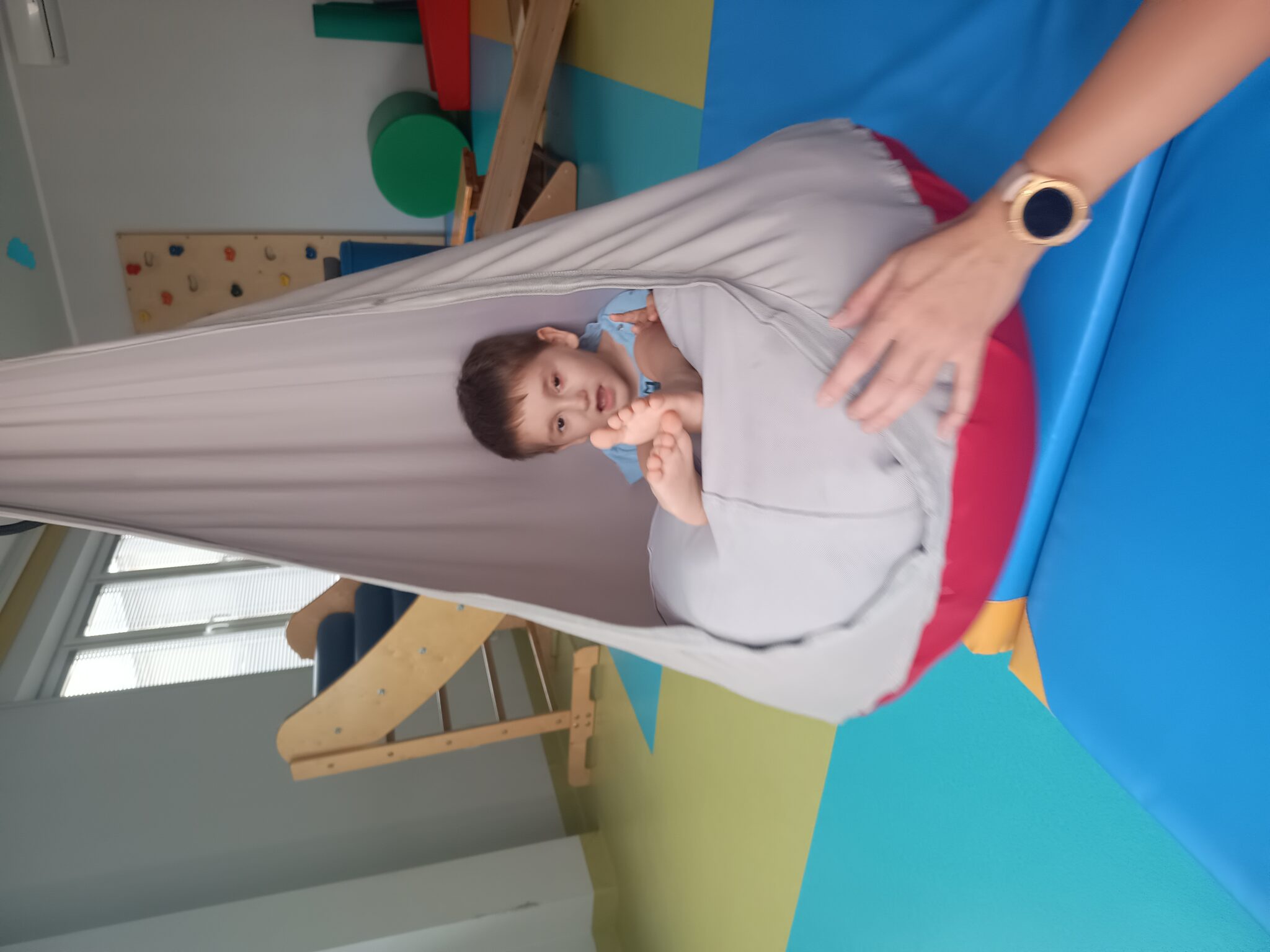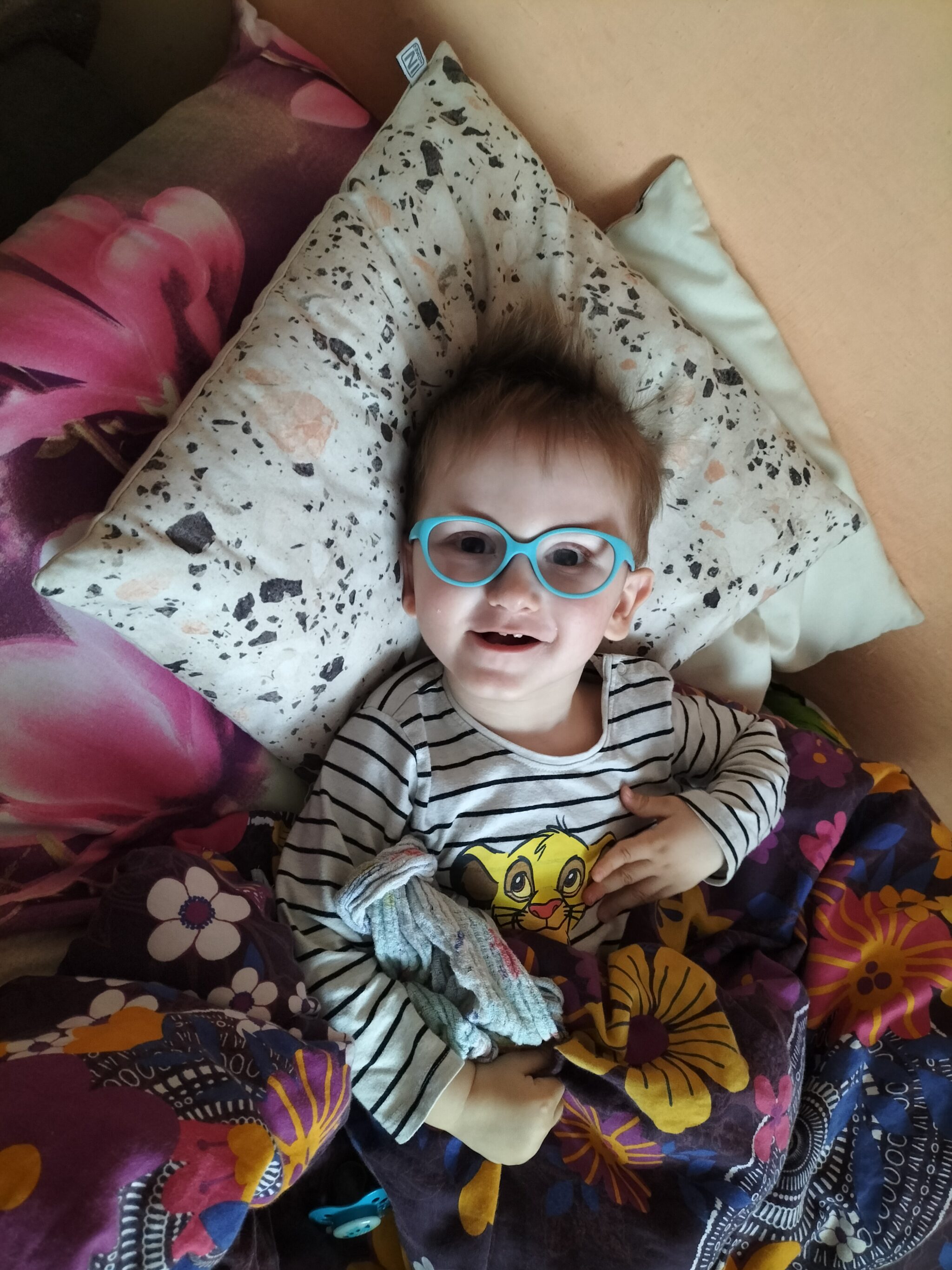 Franek codziennie intensywnie ćwiczy – uczestniczy w rehabilitacji ruchowej, pionizacji w kombinezonie DUNAG, terapii logopedycznej, integracji sensorycznej, terapii czaszkowo – krzyżowej oraz Vojcie. Dzięki tym formom terapii widzimy efekty w jego rozwoju.