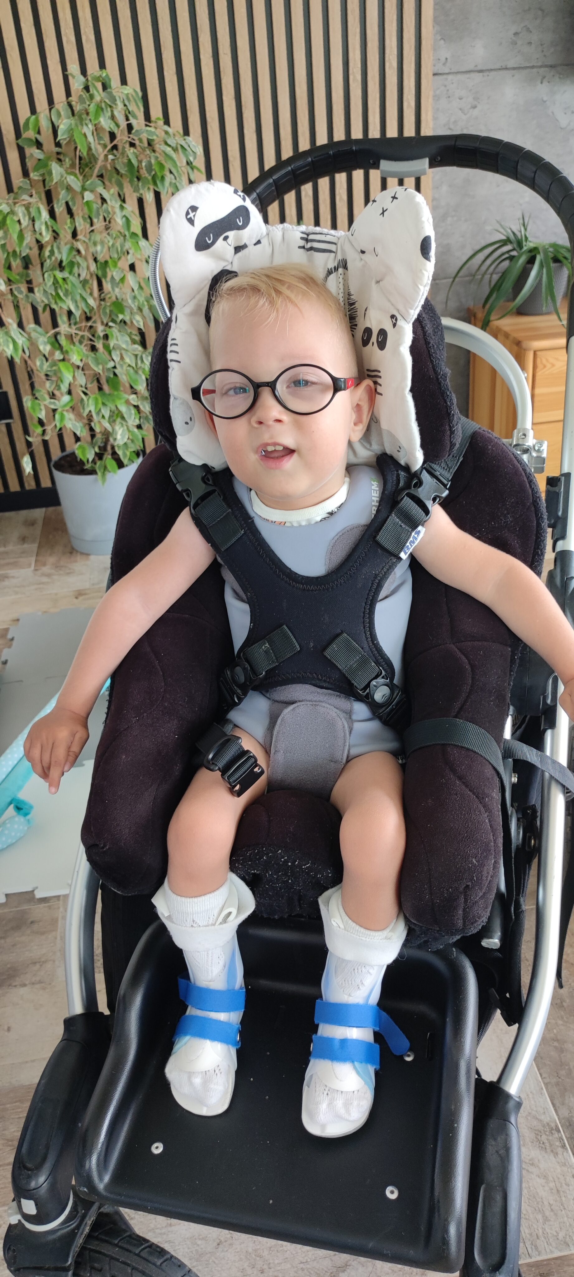 Wymagam stałej rehabilitacji, kontroli u wielu specjalistów, a także różnego rodzaju sprzętu, który pomoże mi w codziennym funkcjonowaniu. Ubiegły rok był dla mnie trudny… częste wizyty w szpitalu, mnóstwo badań , nasilające się napady padaczkowe. Mimo tylu przeciwności jestem energicznym i wesołym chłopcem.