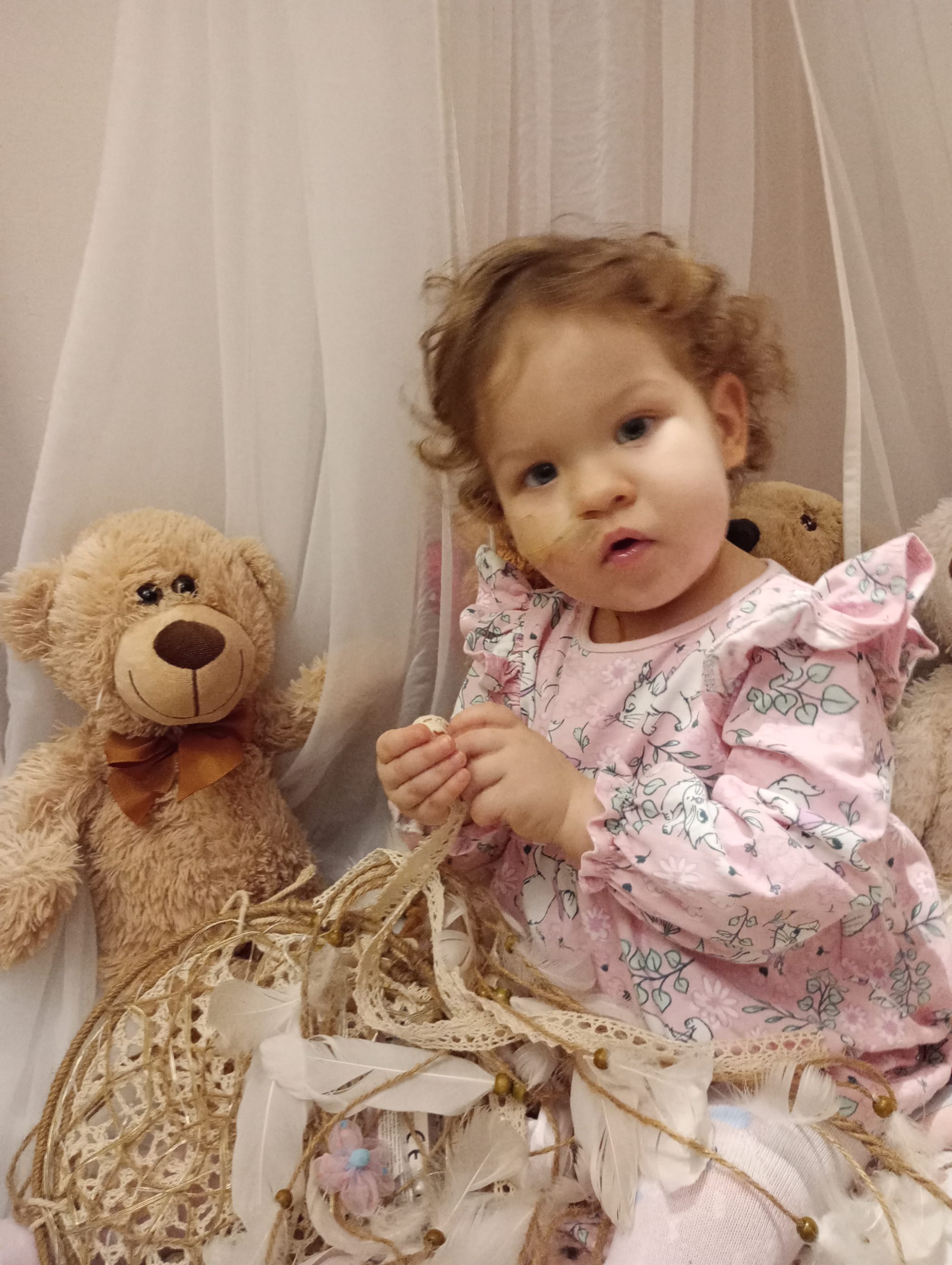 Teraz Gabrysia ma 17 miesięcy i chociaż dalej nie ma diagnozy, jest leczona pod kątem VEO-IBD w Centrum zdrowia dziecka w Warszawie. Choroba autoimmunologiczna wymagająca częstych i niekiedy długich pobytów w szpitalu. Leki immunosupresyjne, sterydo-terapia jak i leczenie biologiczne w naszym przypadku niebyły wystarczające. Dlatego konieczne było wyłonienie stomii w 6 miesiącu życia. W trakcie leczenia doszły powikłania, takie jak wtórna niedoczynność kory nadnerczy i ciężki niedosłuch na prawe ucho (70 dB.). Na ten moment spędziliśmy w szpitalach ponad 200 dni, ponadto liczne wizyty u lekarzy specjalistów, jaki i rehabilitacje wymagają od nas sporego wysiłku.