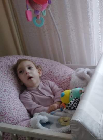 Cześć! Nazywam się Gabrysia. Tak bardzo spieszyłam się na ten świat, żeby poznać mamusię i tatusia, w wyniku czego doznałam wylewów dokomorowych czwartego stopnia. Takie wczesne narodziny mają swoje konsekwencje… Zdiagnozowano u mnie porażenie mózgowe czterokończynowe, padaczkę lekooporną oraz zaburzenia karmienia z objawami nawracającej niedrożności przewodu pokarmowego (mam ileostomię i gastrostomię). Na domiar złego, zupełnie nic nie widzę… A tak bardzo chciałabym zobaczyć moich kochanych rodziców. Doskwiera mi także bardzo wzmożone napięcie mięśniowe, dlatego potrzebuję chodzić na terapię i rehabilitację. Muszę być również pod opieką wielu lekarzy.