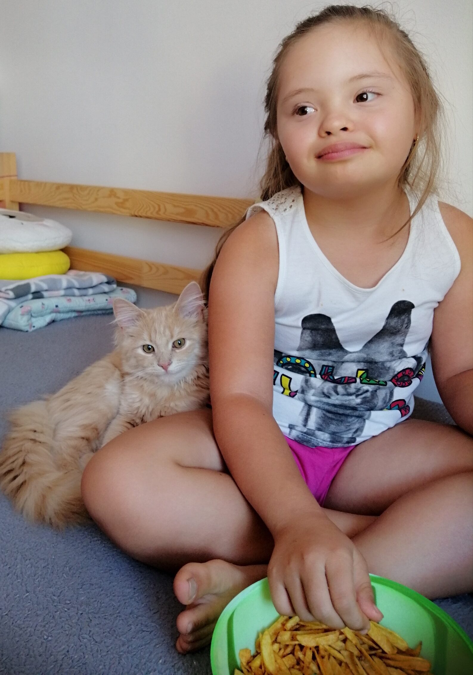 Gabriela przyszła na świat w 2012 roku z trisomią 21 pary chromosomów, co z pewnością znają Państwo pod nazwą zespołu Downa. Po wielopłaszczyznowej diagnostyce specjaliści stwierdzili u mojej córeczki niedoczynność tarczycy, astygmatyzm, refluks żołądkowo-przełykowy, lekki niedosłuch ucha lewego, kamicę woreczka żółciowego oraz obniżone napięcie mięśniowe…