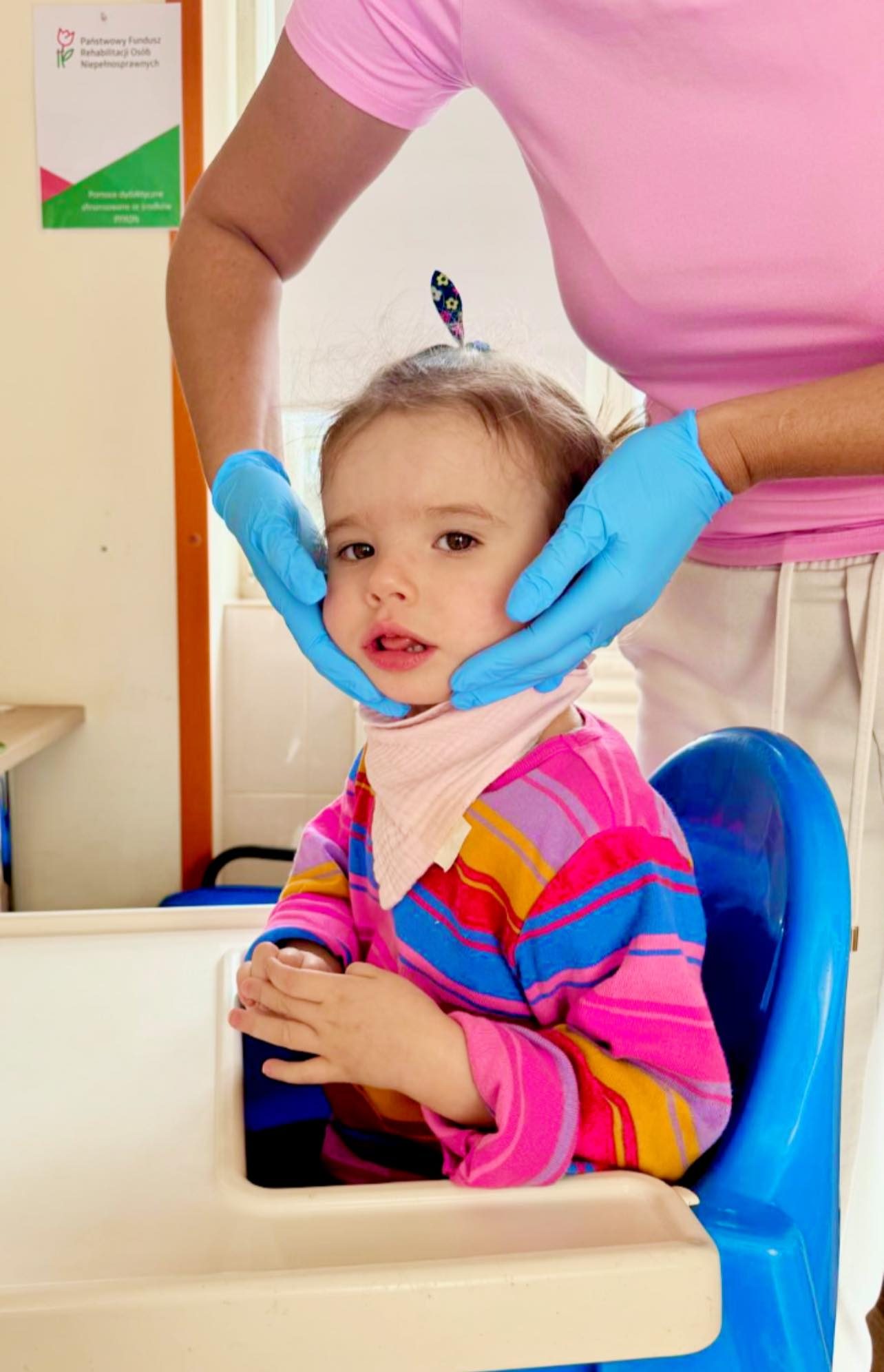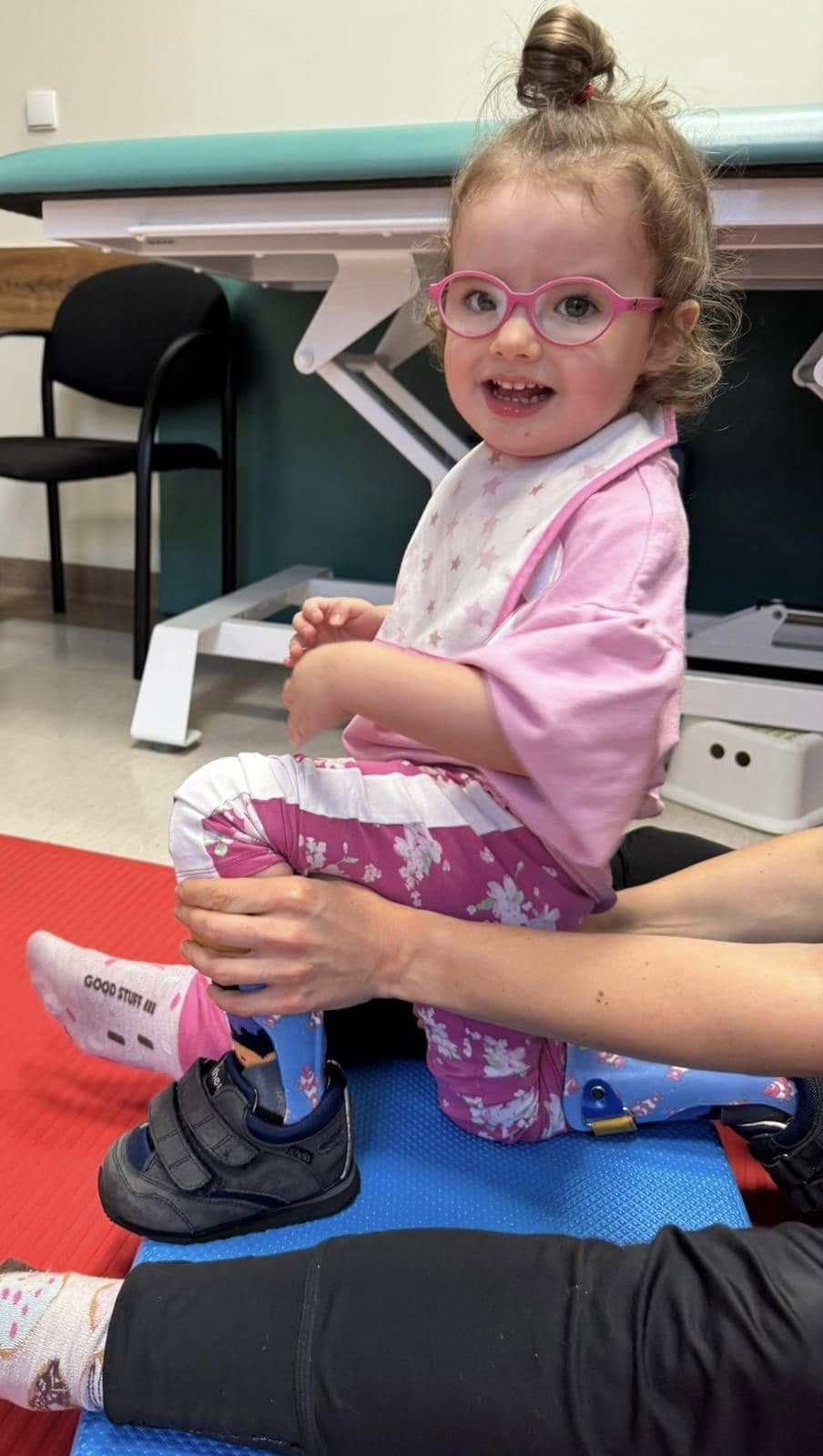 rehabilitujemy ją kilka razy w tygodniu metodą NDT-Bobath (Vojty nie stosujemy ze względu na padaczkę),