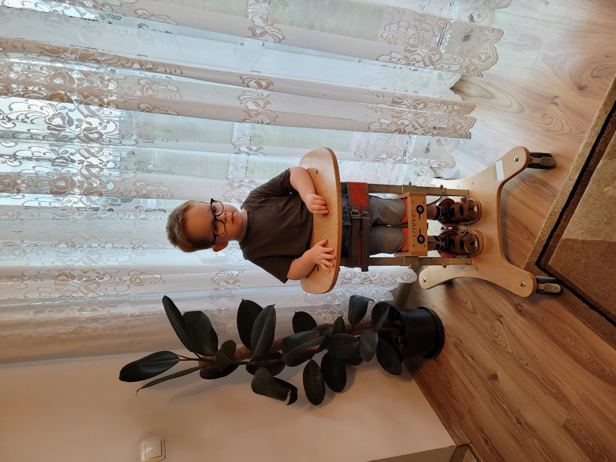 Ignacy zmaga się z globalnie obniżonym napięciem mięśniowym- które staramy się zwalczyć codzienna rehabilitacja; Nie mówi, nie komunikuje się, przejawia zachowania autystyczne- rzadko nawiązuje kontakt wzrokowy, zamyka się w swoim świecie.