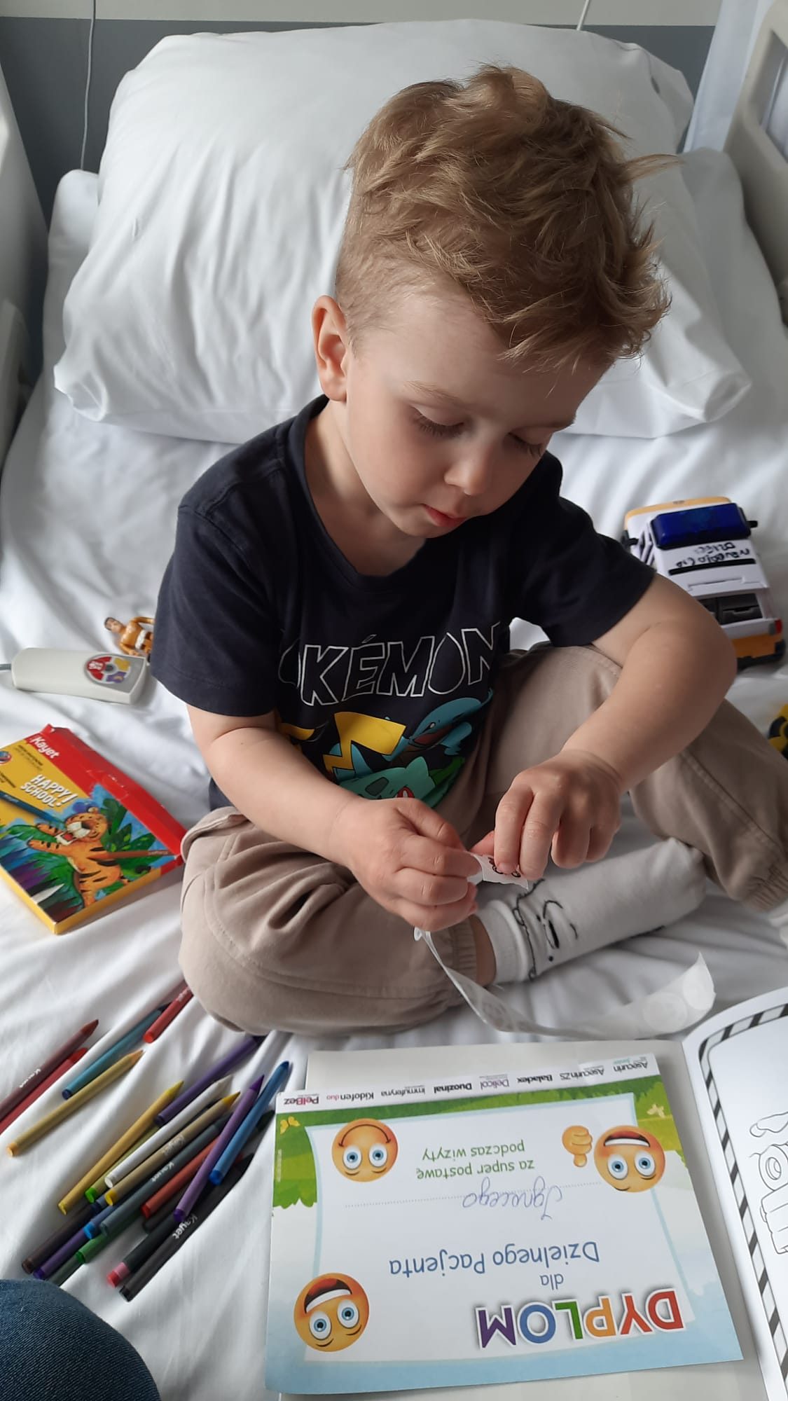 Później zaczęło pojawiać się więcej niepokoju i smutku, ponieważ zauważyliśmy u chłopca niepokojące sygnały świadczące o problemach rozwojowych. Skłoniło nas to do wizyty u neurologa, a badania biochemiczne krwi wykazały znaczne odchylenia od normy w poziomie kinazy. Był to sygnał do rozpoczęcia szczegółowej diagnostyki genetycznej w kierunku dystrofii mięśniowej Duchenne’a (DMD). Niestety, wyniki badań potwierdziły nasze najgorsze obawy – u Ignasia zdiagnozowano dystrofię mięśniową Duchenne’a, nieuleczalną i postępującą chorobę. Od razu podjęliśmy niezbędne działania terapeutyczne, aby spowolnić rozwój choroby i zapewnić naszemu synkowi jak najlepszą jakość życia. Obecnie jesteśmy pod stałą opieką specjalistycznych poradni: rehabilitacyjnej, logopedycznej, kardiologicznej oraz neurologicznej. Rehabilitacja jest kluczowym elementem terapii, ponieważ pomaga opóźnić proces zaniku mięśni. Musi być prowadzona systematycznie w sposób równomierny dla rozwoju całego organizmu, aby jak najdłużej utrzymać sprawność wszystkich układów w ciele Ignasia. Niestety, wiele z tych zabiegów nie jest refundowanych lub nie w wystarczającej skali, co stanowi wyzwanie w codziennej opiece nad synkiem. Poza tym musimy zapewnić Ignasiowi wsparcie logopedyczne, które również wiąże się z dodatkowymi kosztami. Zmagamy się także z wydatkami związanymi z dojazdami do specjalistów oraz zakupem specjalistycznego sprzętu wspierającego rozwój naszego synka, takiego jak ortezy, przyrządy do masażu czy elektrostymulatory. Wszelkie wsparcie, które otrzymujemy, pozwala nam utrzymać ciągłość terapii Ignasia i wykorzystać wszystkie dostępne możliwości, aby opóźnić rozwój choroby. Wasza pomoc może okazać się kluczowa w walce naszego Ignasia z dystrofią mięśniową Duchenne’a. Z całego serca dziękujemy za okazane nam dobro, Rodzice