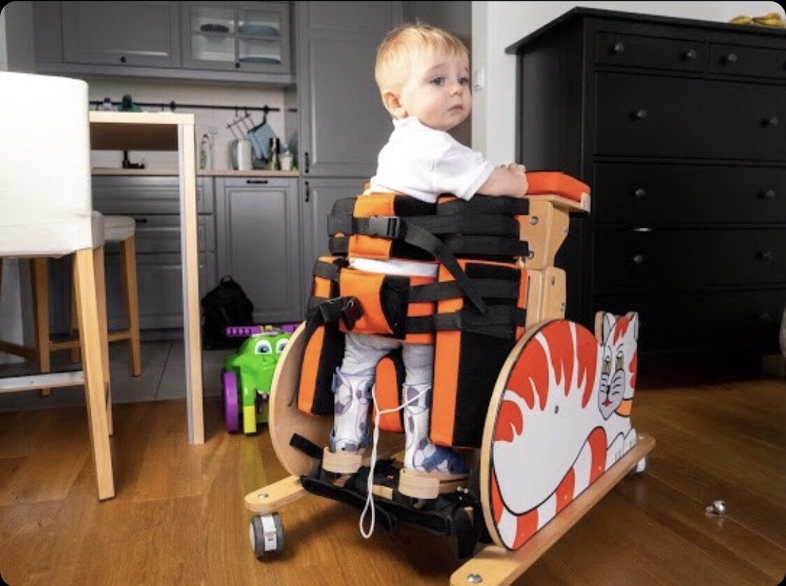 Dzięki lekowi i codziennej ciężkiej walce, ćwiczeniom i rehabilitacji, Igorek stawia pierwsze kroki… Niestety przed nim jeszcze wiele pracy. Refundowana rehabilitacja to kropla w morzu potrzeb, dlatego musimy korzystać z zajęć prywatnych… Chcemy robić to jak najczęściej, dlatego właśnie zdecydowaliśmy się poprosić o pomoc. Potrzebujemy też wsparcia, aby kupić Igorkowi niezbędne pomoce ortopedyczne, w tym ortezy, z których bardzo szybko wyrasta.