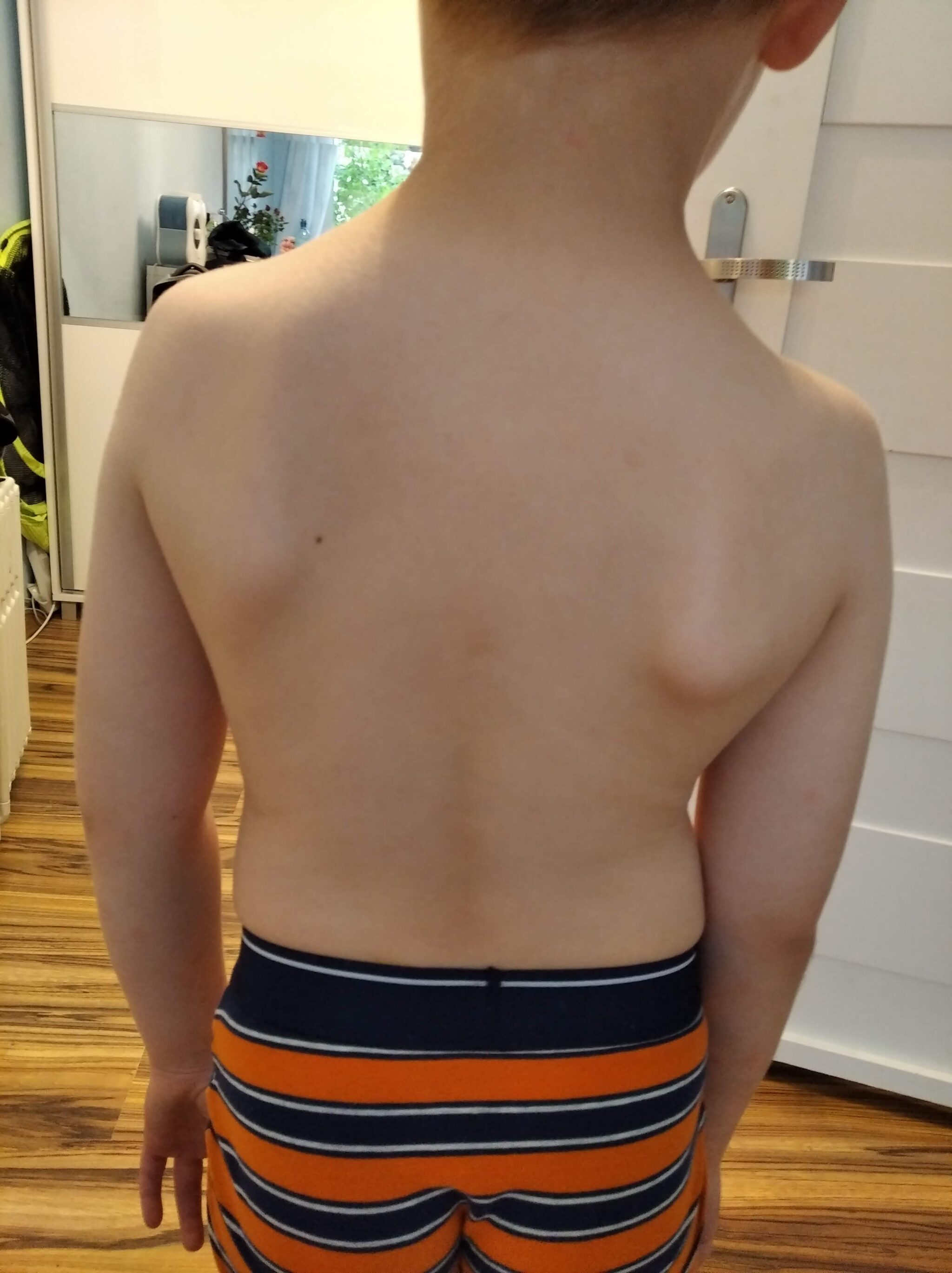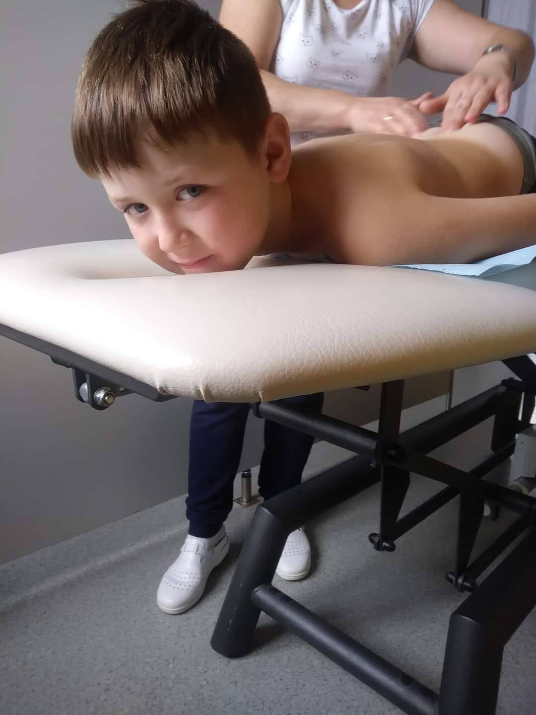 W wieku 4,5 lat wykryto u syna skoliozę idiopatyczną i afazję ruchową.