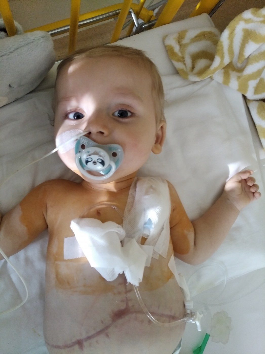 Kubuś urodził się 18.09.2019 r. jako zdrowy chłopiec. Już w pierwszej dobie po urodzeniu okazało się, że cierpi na bardzo rzadką chorobę metaboliczną o ciężkim przebiegu – HYPERAMONEMIE TYPU II -DEFICYT OTC. Jedynym ratunkiem dla Kubusia okazał się przeszczep wątroby, który odbył się 28.04.20 r., część własnego organu podarowała Mama. W czerwcu 2020 r. Kubuś opuścił szpital by pierwszy raz zobaczyć świat. We wrześniu 2020 r. dostaliśmy kolejny cios – CHŁONIAK LIMFOBLASTYCZNY-ROZLANY. Onkologia stała się drugim domem. Kolejna walka o życie, kolejny raz wygrana. Niestety w lutym 2021 r. przychodzi druzgocąca diagnoza: CGD PRZEWLEKŁA CHOROBA ZIARNINIAKOWA. 28.08.2024 Kubulek przeszedł przeszczep szpiku, dawcą znów była Mama. Kuba jest niepełnosprawny intelektualnie w stopniu głębokim. Wymaga całodobowej opieki, intensywnej rehabilitacji, przyjmuje bardzo dużo leków, w tym nierefundowanych. Jest pod stałą opieką transplantologów, gastroenterologów, immunologów, onkologów, metabolistów, neurologów i rehabilitantów.