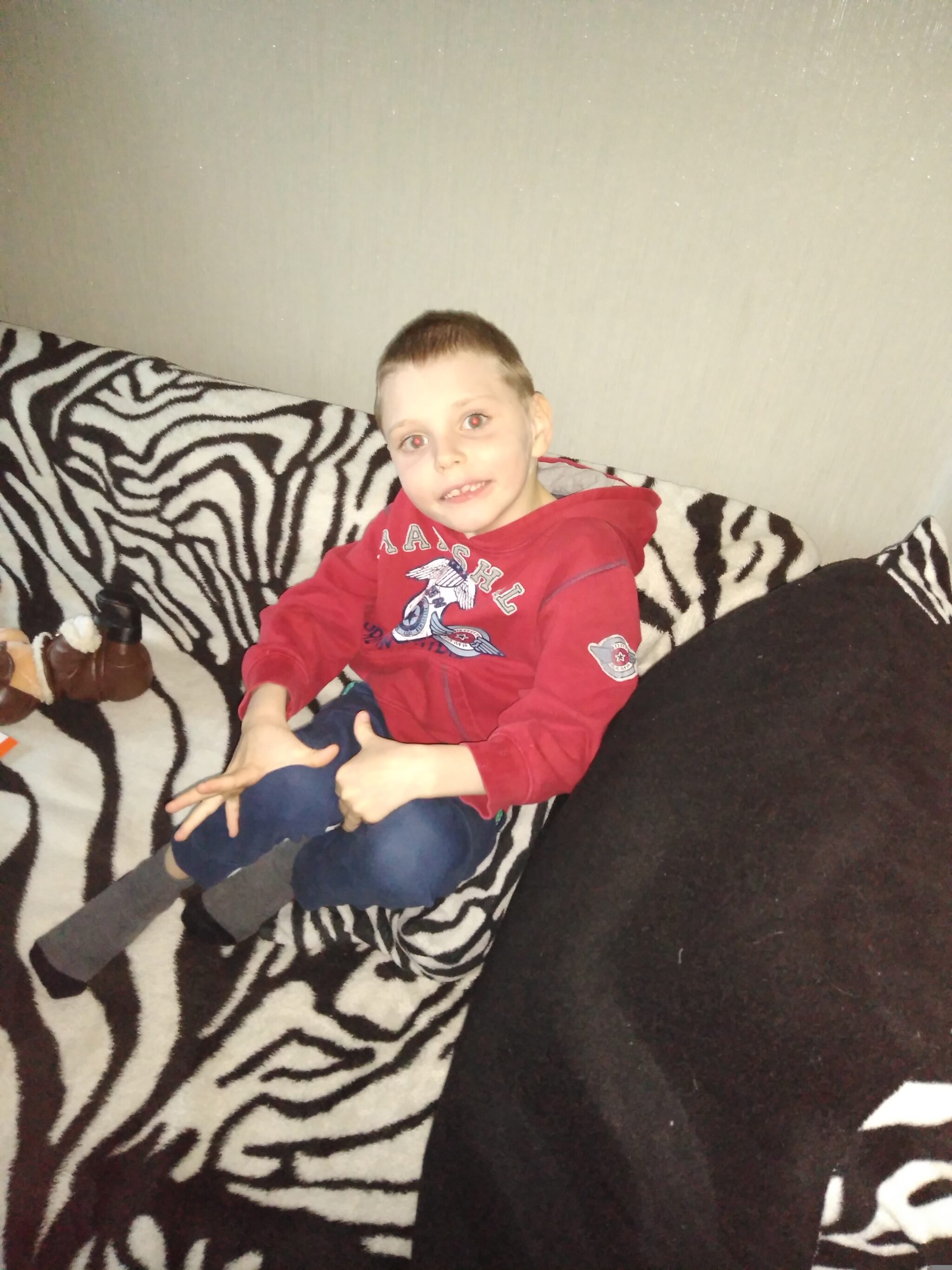 Mam na imię Kuba i na co dzień jestem pogodnym i uśmiechniętym chłopcem. Moją ulubioną zabawą jest majsterkowanie – tworzenie nowych maszyn sprawia mi ogromną radość! Niestety ze względu na zaburzenia napięcia w moich rączkach i problemy z precyzją ruchów, nie zawsze wszystko mi wychodzi tak, jakbym chciał. Moim największym marzeniem jest granie w piłkę, jeżdżenie na rowerze i podwórkowe zabawy z moimi rówieśnikami. Pewnie pomyśleliście, że to bardzo łatwe w osiągnięciu marzenia… Niestety ze względu na moje problemy z utrzymaniem równowagi (którym winna jest hipoplazja ciała modzelowatego), te umiejętności nie są dla mnie takie proste. Rodzice mówią mi jednak, że kiedyś na pewno uda mi się dokonać wszystko, o czym teraz jedynie śnię, ale pod jednym warunkiem – regularną i ciężką pracą na rehabilitacji, która niestety wiąże się z bardzo dużymi kosztami. Muszę Wam jeszcze o czymś powiedzieć, na co dzień bardzo dużo ćwiczę nad opanowaniem swoich emocji, szczególnie tych negatywnych. Złość bardzo mi szkodzi i zagraża wystąpieniem padaczki, z którą od dawna walczę za pomocą stale przyjmowanych leków.