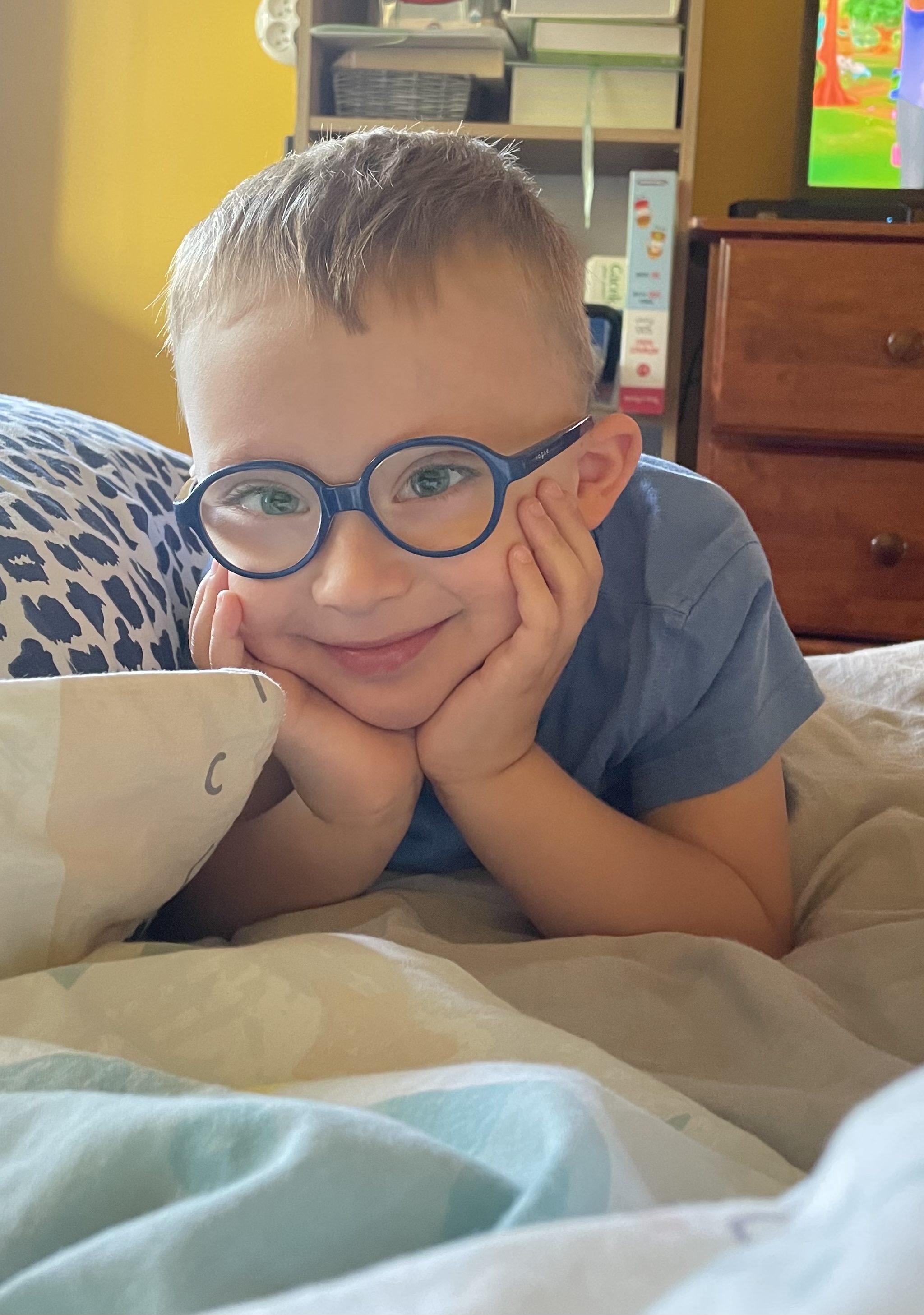 Jaś urodził się z rozszczepem kręgosłupa w odcinku lędźwiowym, pęcherzem neurogennym, zezem zbieżnym oraz dużą nadwzrocznością.