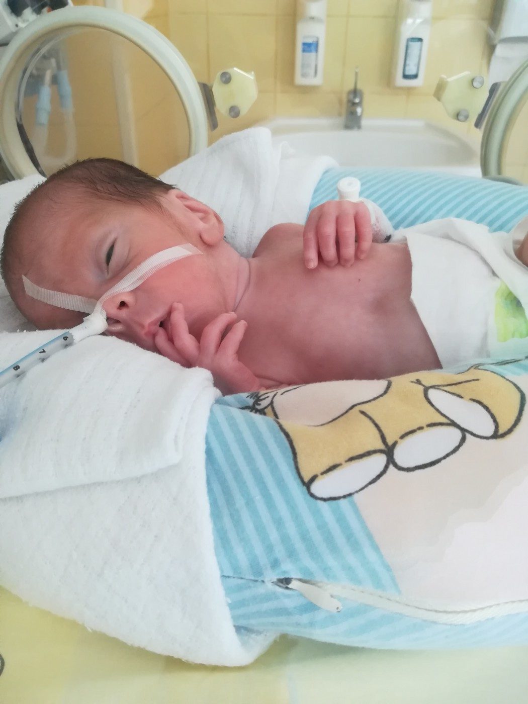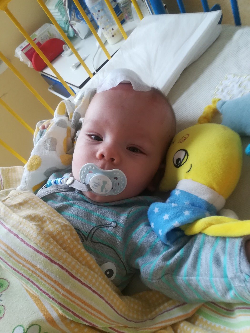 Jasiek urodził się przedwcześnie w 28 tc z wagą 1100 g w 2017 roku. Niestety już od pierwszych chwil swojego życia musiał o nie walczyć. Kilka dni po porodzie pojawiły się wylewy III i IV stopnia, leukomalacje oraz wodogłowie pokrwotoczne. W wieku 8 miesięcy przeszedł zabieg wentrykulostomi (endoskopii) komory III, aby zatrzymać narastające wodogłowie i nowe uszkodzenia mózgu.